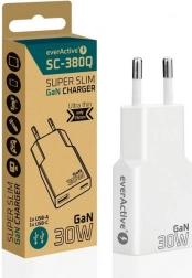 Le chargeur secteur ultrafin everActive avec technologie GaN offre une puissance de 30 W, la prise en charge du Power Delivery et du Quick Charge 3.0. Grâce aux deux ports USB‑C + USB‑A, il recharge rapidement et en toute sécurité téléphone, tablette et petits appareils électroniques, dans un format compact et idéal pour le voyage.