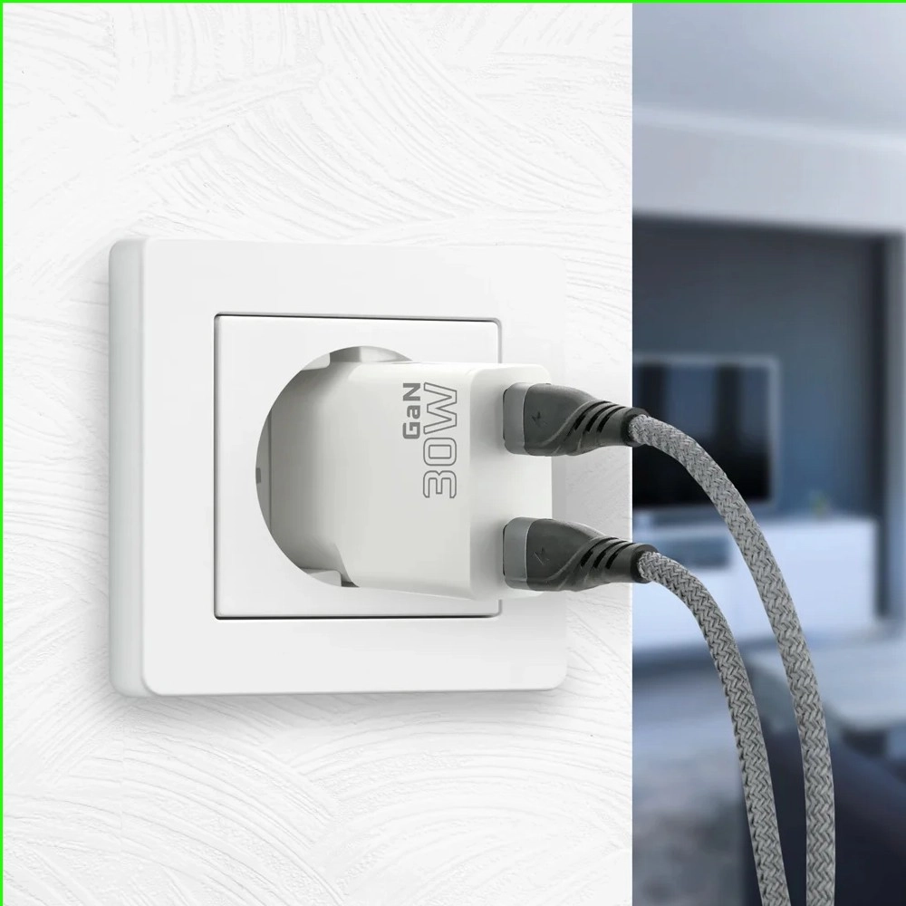 Deux sorties USB‑C permettent de charger deux appareils en même temps, tandis que le corps super slim se glisse aisément dans les prises serrées derrière les meubles. Une protection fiable contre les surtensions, les surcharges et la surchauffe garantit un fonctionnement sûr.