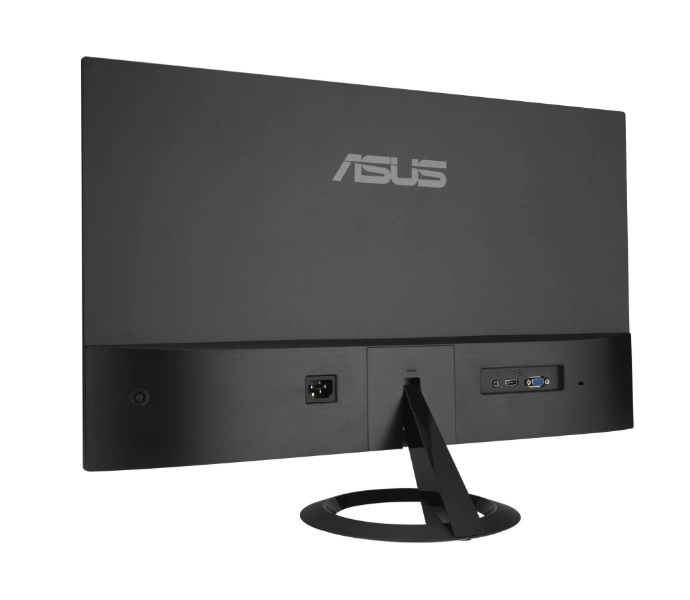 Le design à bord ultra-fin et profil mince est élégant et gain de place. Les ports HDMI et VGA assurent une connexion facile aux appareils modernes comme plus anciens. Le pied circulaire stable garantit une bonne tenue sur le bureau et un acheminement propre des câbles.