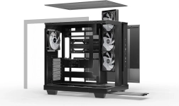 Prise en charge des radiateurs jusqu’à 360 mm, des cartes mères ATX et des GPU d’environ 400 mm. Deux emplacements d’alimentation et compatibilité avec les cartes à connecteurs arrière (ASUS BTF, MSI Project Zero, Gigabyte Project Stealth).