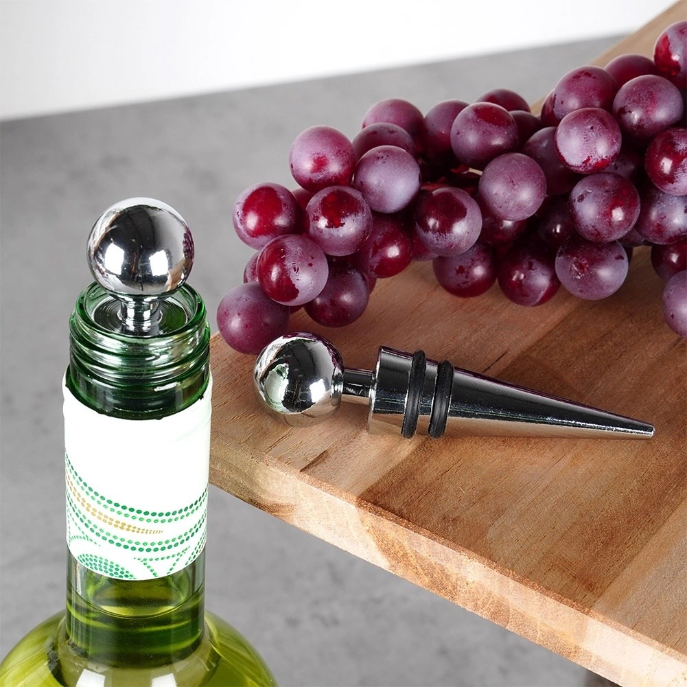 Pratique lot de deux bouchons à vin en acier inoxydable de 9 cm qui préservent fiablement la fraîcheur et l’arôme des boissons. Grâce à deux anneaux en silicone, ils assurent une étanchéité parfaite, empêchent les fuites et prolongent la fraîcheur du vin, du champagne et d’autres boissons. Leur finition argentée élégante convient à tous les foyers comme aux occasions festives.