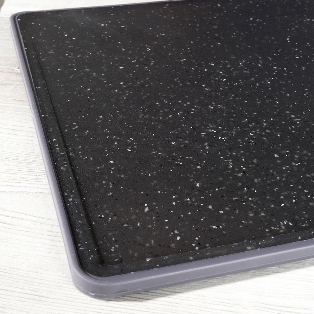 Pratique et élégante, cette planche en plastique de qualité à surface imitation pierre granit noire est idéale pour couper fruits, légumes et viandes. Grâce à son matériau non poreux, elle n’absorbe ni odeurs ni liquides et aide à garder le plan de travail propre et sans rayures.