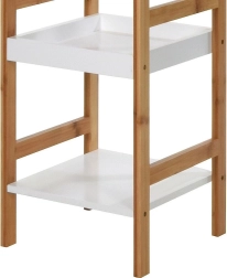 Cette étagère à trois niveaux en bois de bambou et MDF séduit par son aspect naturel et sa conception fonctionnelle. Elle convient à la salle de bain, mais sera également parfaite dans la cuisine, le garde-manger, sur le balcon ou la terrasse. Grâce à ses dimensions compactes de 30 × 30 × 72 cm, elle s’intègre même dans les espaces réduits tout en offrant suffisamment de place pour les besoins quotidiens.