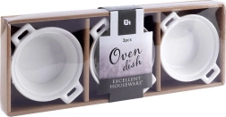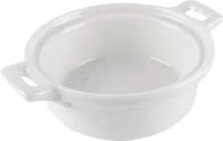 Pratique lot de trois ramequins en porcelaine blanche de 130 ml, idéal pour des portions individuelles de desserts comme de plats salés. Chaque coupelle dispose de poignées intégrées pour un transport sécurisé et, grâce à l’émail de qualité, se nettoie facilement. Compatible four jusqu’à 230 °C, lave-vaisselle et micro-ondes. Parfait pour crème brûlée, soufflés, gratins ainsi que pour servir sauces, dips et snacks.