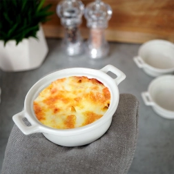 Le volume de 130 ml est parfait pour la crème brûlée, les soufflés, les gratins de pommes de terre, les mini pâtes gratinées ou le service de dips et de sauces.