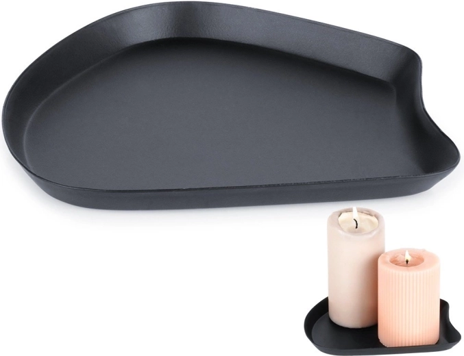 Sous-plat élégant au design minimaliste pour exposer en toute sécurité des bougies, des compositions et de petits objets. Fabrication en métal avec finition noire mate, forme irrégulière et bords relevés pour protéger les meubles de la cire et de la chaleur. Durable, stable et stylé pour les intérieurs modernes.