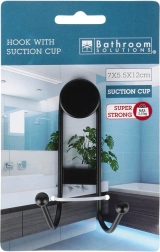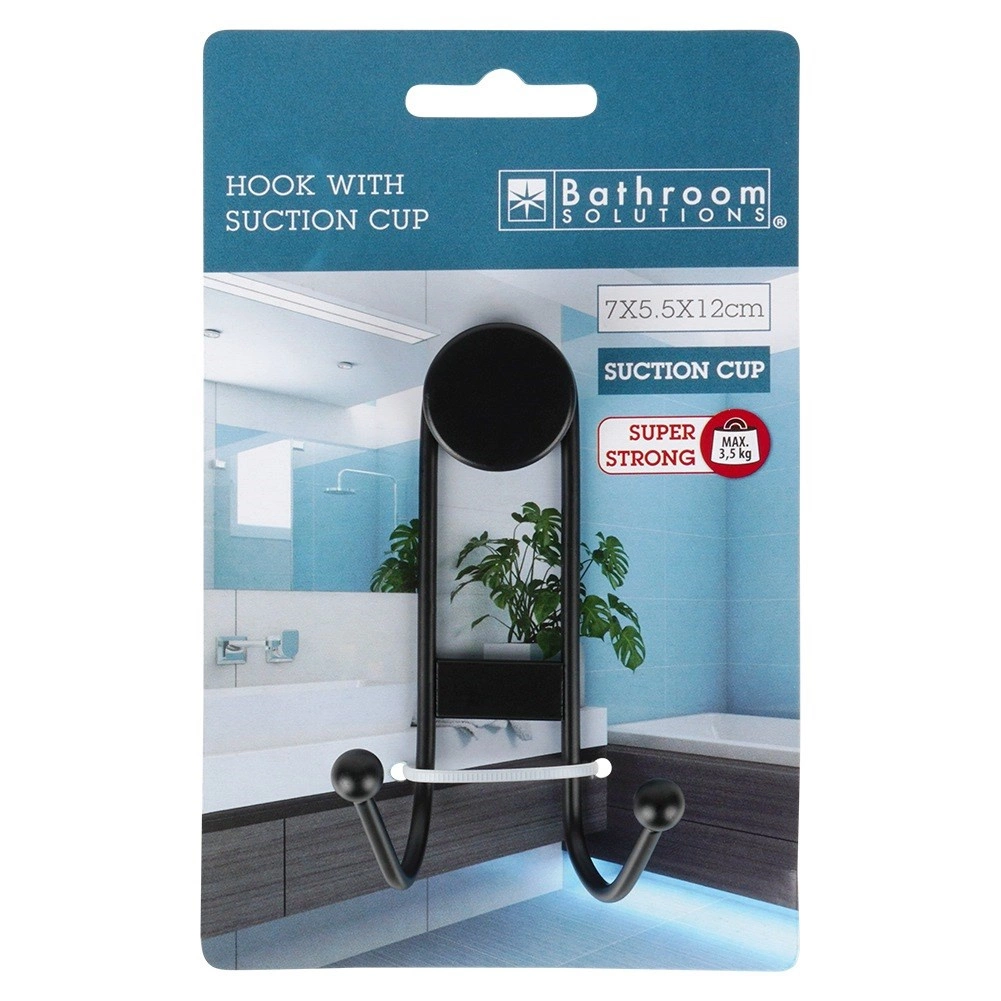 Crochet double métallique avec ventouse, noir, 6,5 × 5,5 × 10 cm