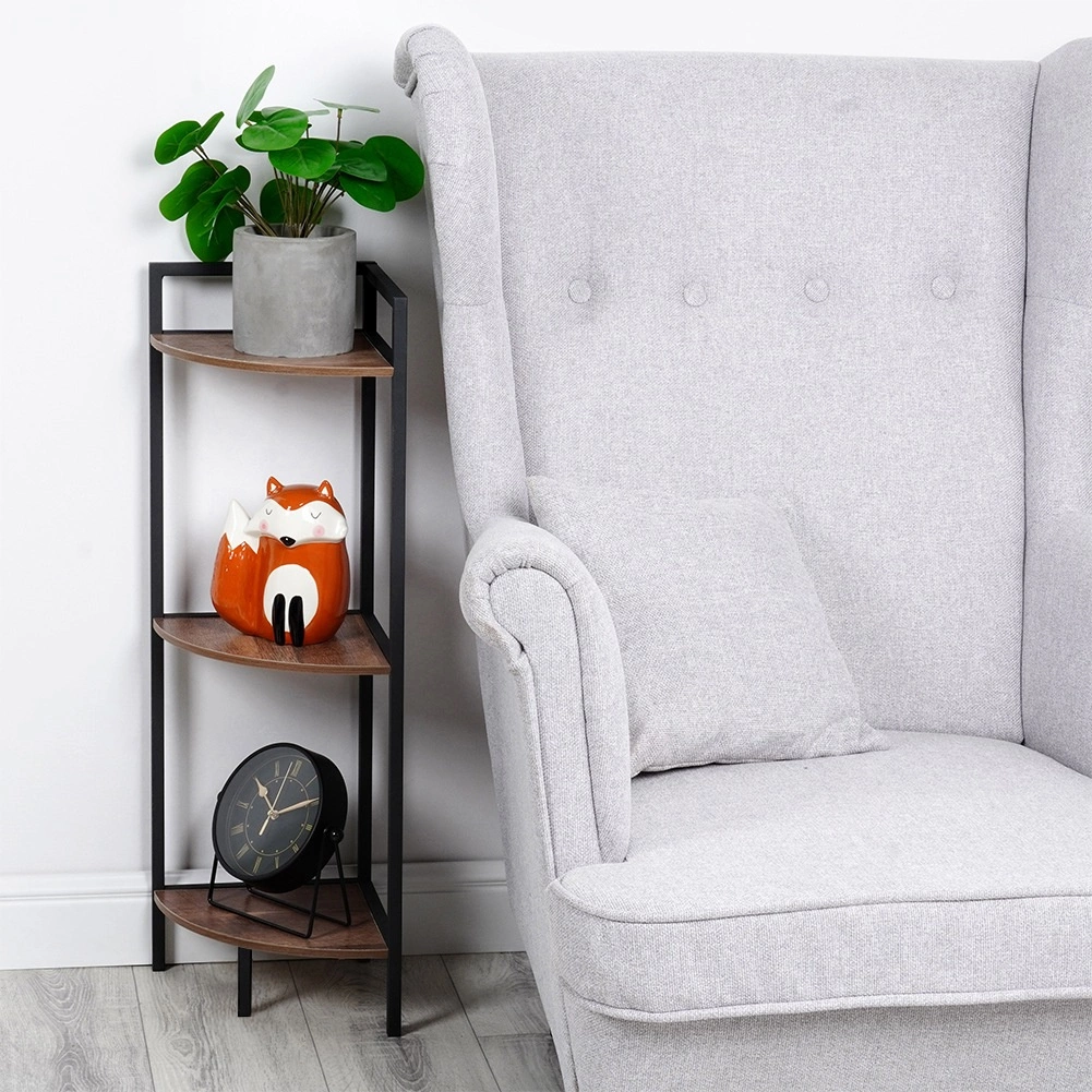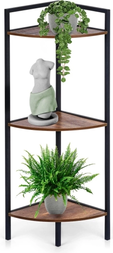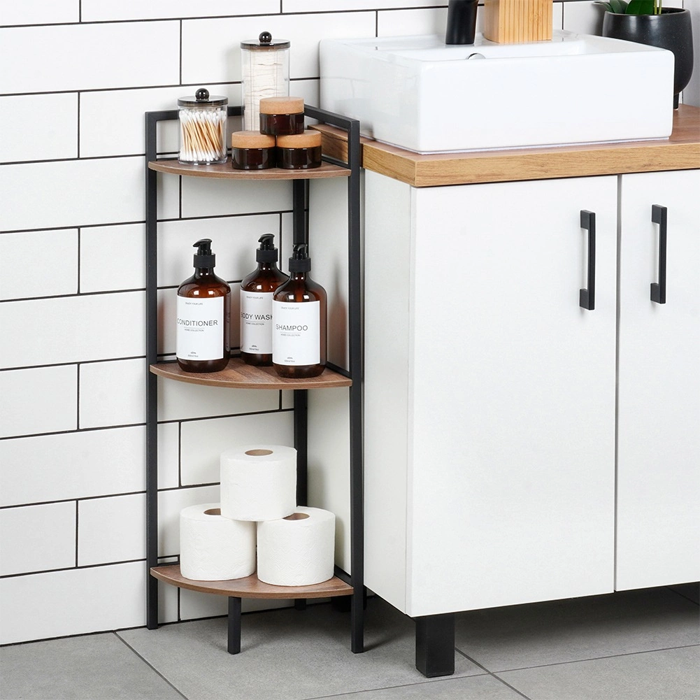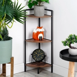 Grâce à l’angle droit de 90°, elle s’intègre parfaitement dans les coins et aide à maximiser l’utilisation de l’espace. La structure métallique offre une grande stabilité et les plateaux en MDF sont faciles d’entretien. L’étagère peut être fixée au mur si nécessaire pour une utilisation encore plus sûre.