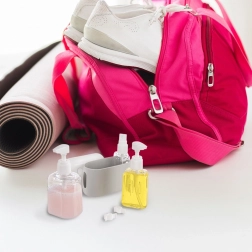 Ce set de flacons de voyage compact est idéal pour l’avion, les week-ends, le camping et le quotidien au travail ou à l’école. Le corps transparent des contenants permet une vérification rapide du niveau, les bouchons blancs ferment solidement et évitent les fuites. L’étui résistant avec fond en silicone maintient les flacons bien en place et les protège des chocs et des salissures.