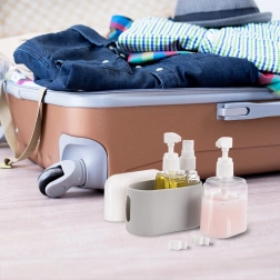 L’étui refermable avec fond en silicone maintient les flacons stables, les protège des dommages et garde tout propre et regroupé dans la valise ou le sac.