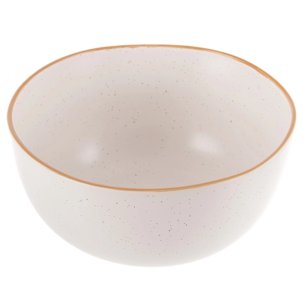 Élégant bol beige d’une capacité de 1,2 l et d’un diamètre de 18 cm, fabriqué en céramique de qualité avec un émaillage moucheté et un bord naturel façon pierre. Parfait pour les soups, ramen, céréales et salades, il est compatible lave-vaisselle et micro-ondes et son design intemporel complète à merveille une table du quotidien comme de fête.
