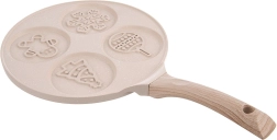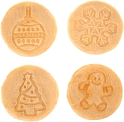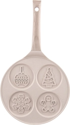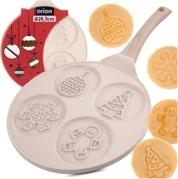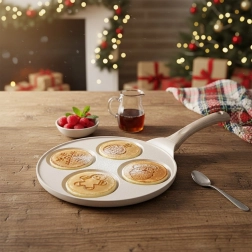 Profitez d’une cuisson simple et rapide avec une poêle de 26 cm de diamètre et quatre moules (Ø 10 cm) qui façonnent des portions parfaitement rondes avec des reliefs de motifs festifs. Le revêtement en granite antiadhésif garantit une saisie uniforme sans brûler et avec un minimum d’huile.