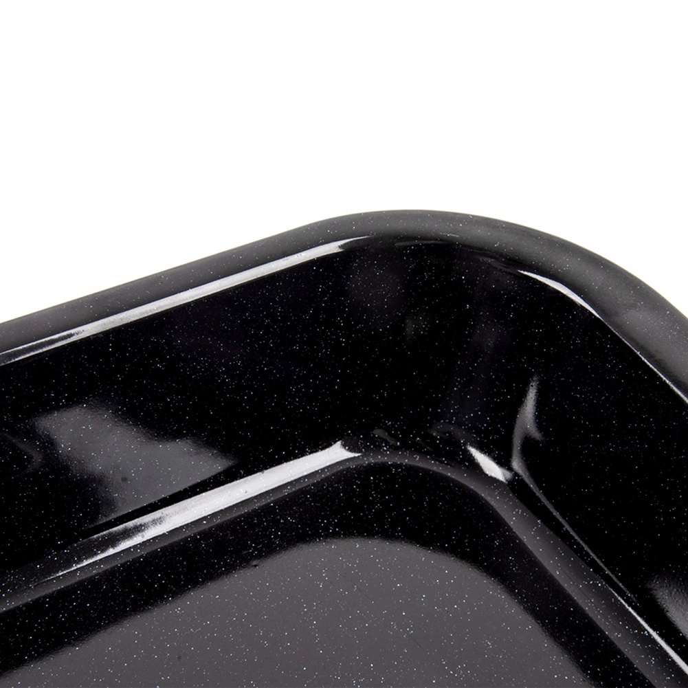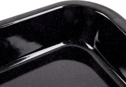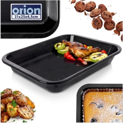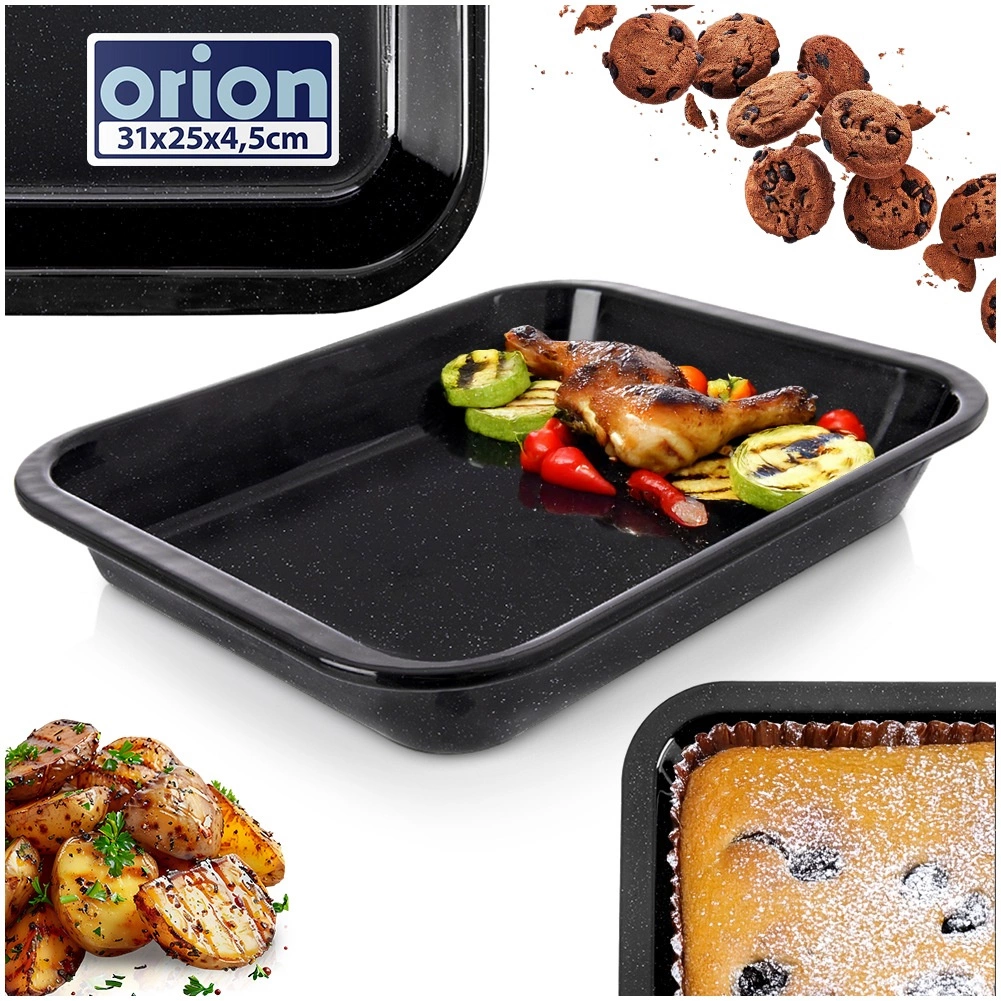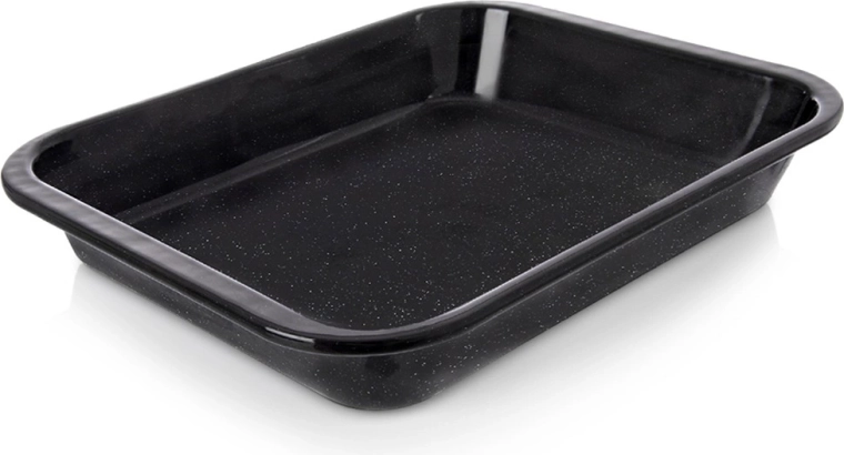 Pratique plaque rectangulaire en acier émaillé de 31 × 25 × 4,5 cm pour la cuisson quotidienne. Offre une répartition uniforme de la chaleur, une résistance aux rayures, un nettoyage facile et un rebord haut pour des rôtis juteux, des gratins et des desserts sucrés. Compatible avec les fours à gaz et électriques et lavable au lave-vaisselle.