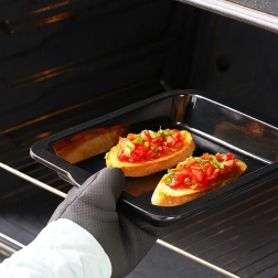 La surface lisse et brillante facilite le démoulage des plats et passe au lave-vaisselle. Compatible avec les fours électriques et à gaz.