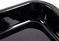 La plaque à pâtisserie émaillée est un indispensable dans chaque cuisine. Grâce à l’acier robuste et à sa couche d’émail lisse et brillante, elle supporte parfaitement les hautes températures, résiste aux rayures et se nettoie facilement. Elle est parfaite pour les viandes, les gratins, les légumes, les pommes de terre, la pizza ainsi que pour les tartes, biscuits et pâtisseries.