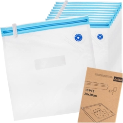 Set pratique de sachets sous vide pour une fraîcheur prolongée des aliments et un gain de place. Chaque sachet mesure 26 × 28 cm, est réutilisable, sans BPA et résistant de −20 °C à +110 °C. Grâce à la double fermeture zippée et à la valve d’aspiration d’air, vous obtenez une étanchéité parfaite, une fraîcheur jusqu’à 5× plus longue et une protection fiable contre les odeurs.