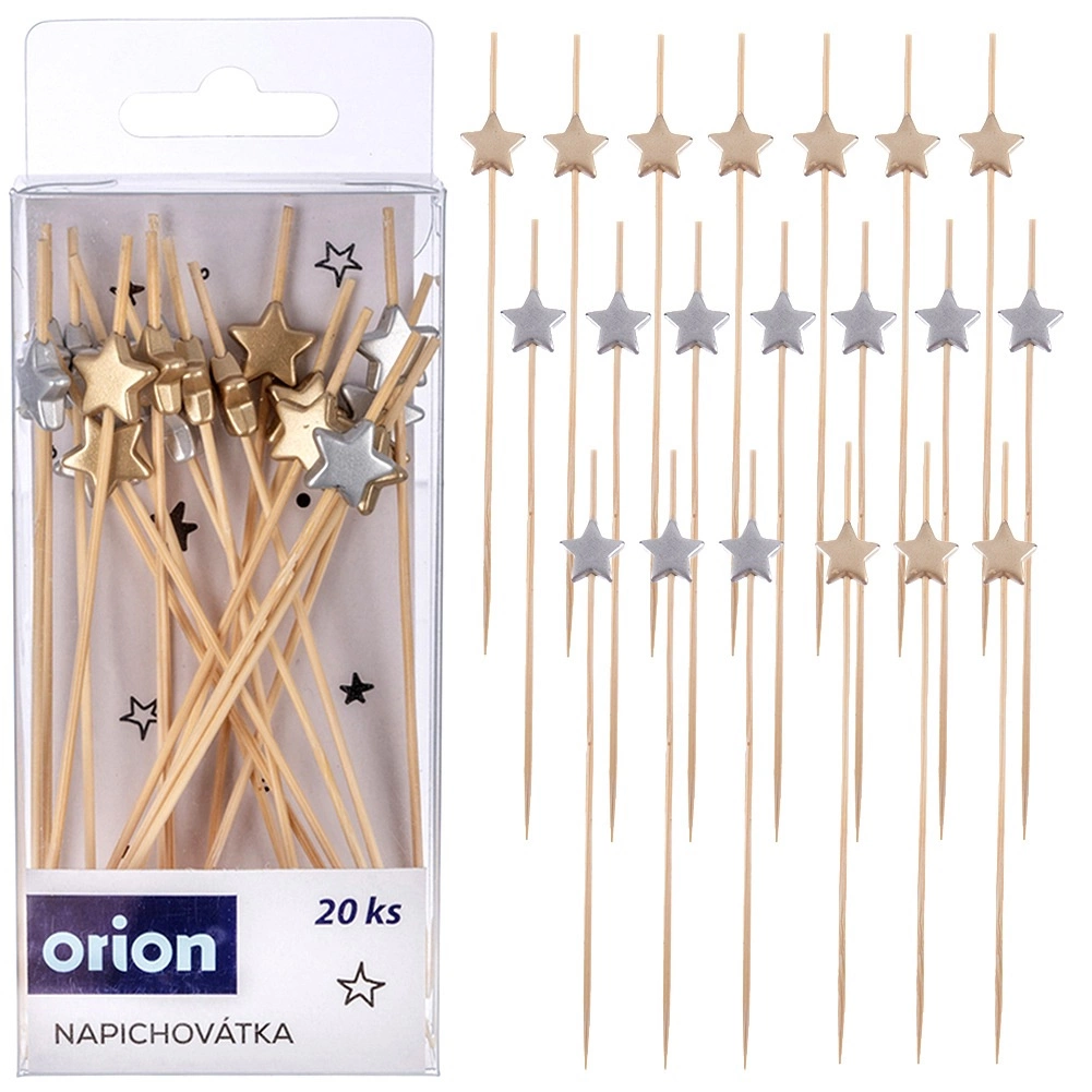 Rendez votre service de collations plus attrayant avec des pics décoratifs à étoiles. Le bambou naturel combiné à un ornement en bois au fini doré et argenté assure une présentation séduisante et un piquage confortable. Chaque paquet contient 20 pièces d’une longueur universelle de 12 cm.