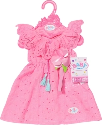 La tenue est conçue pour les poupées BABY born de 43 cm et constitue une excellente base pour les jeux de rôle, le développement de la motricité fine et de l’imagination. L’emballage inclut également un cintre rose pour un rangement pratique dans l’armoire de la poupée.