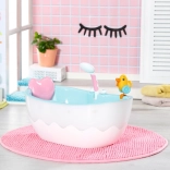 Baignoire bleue à l’intérieur, blanche à l’extérieur avec vague
