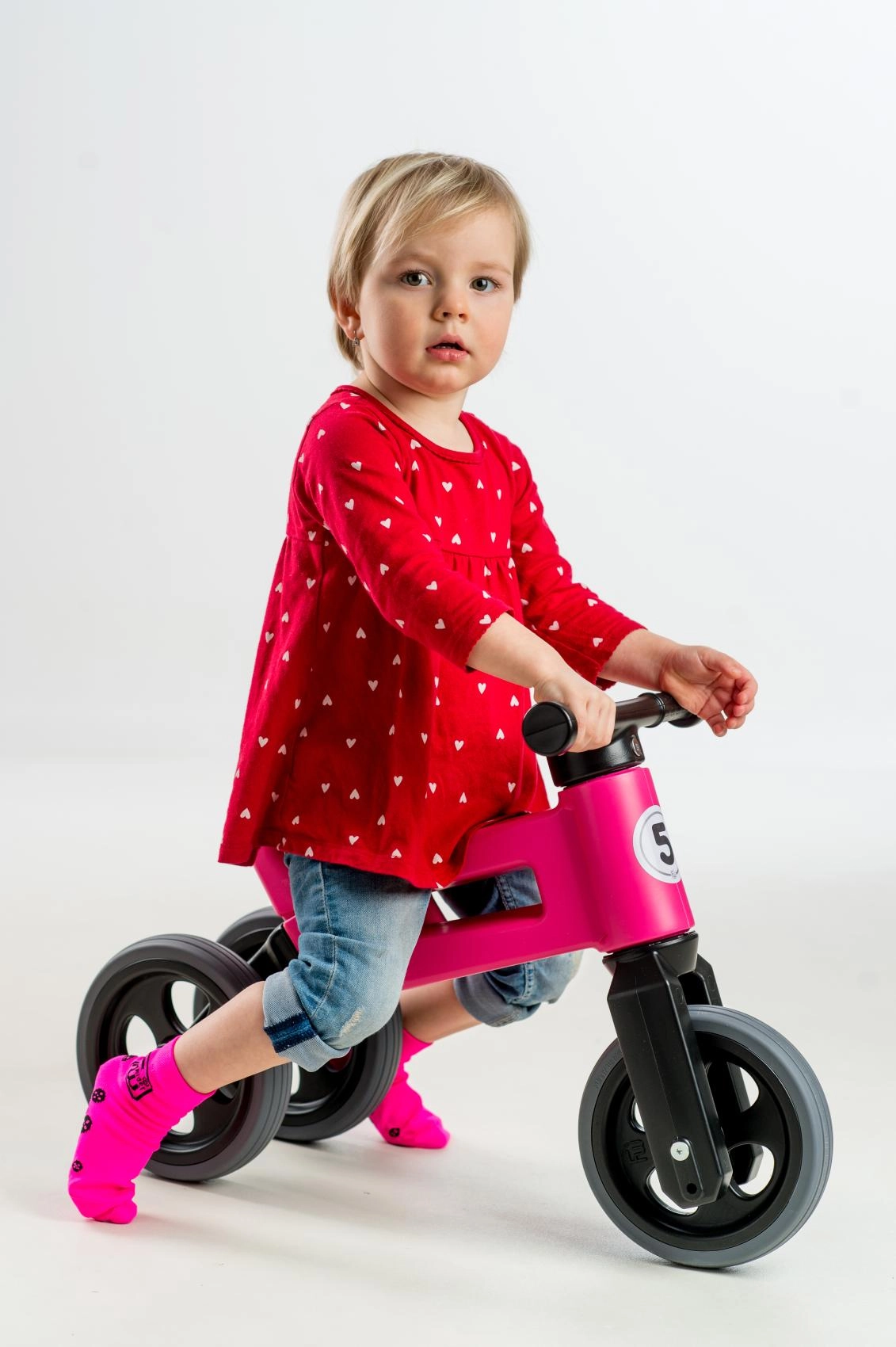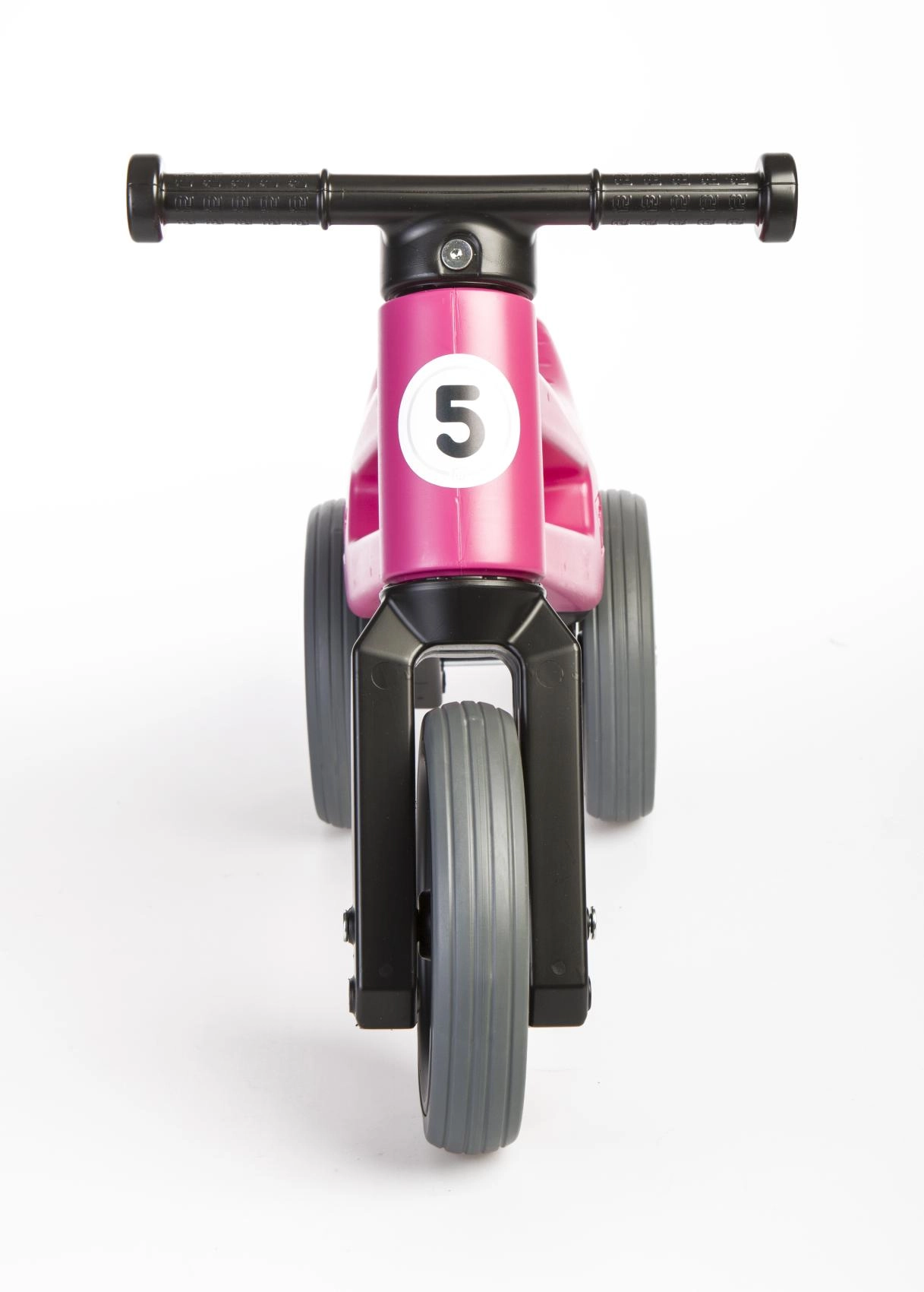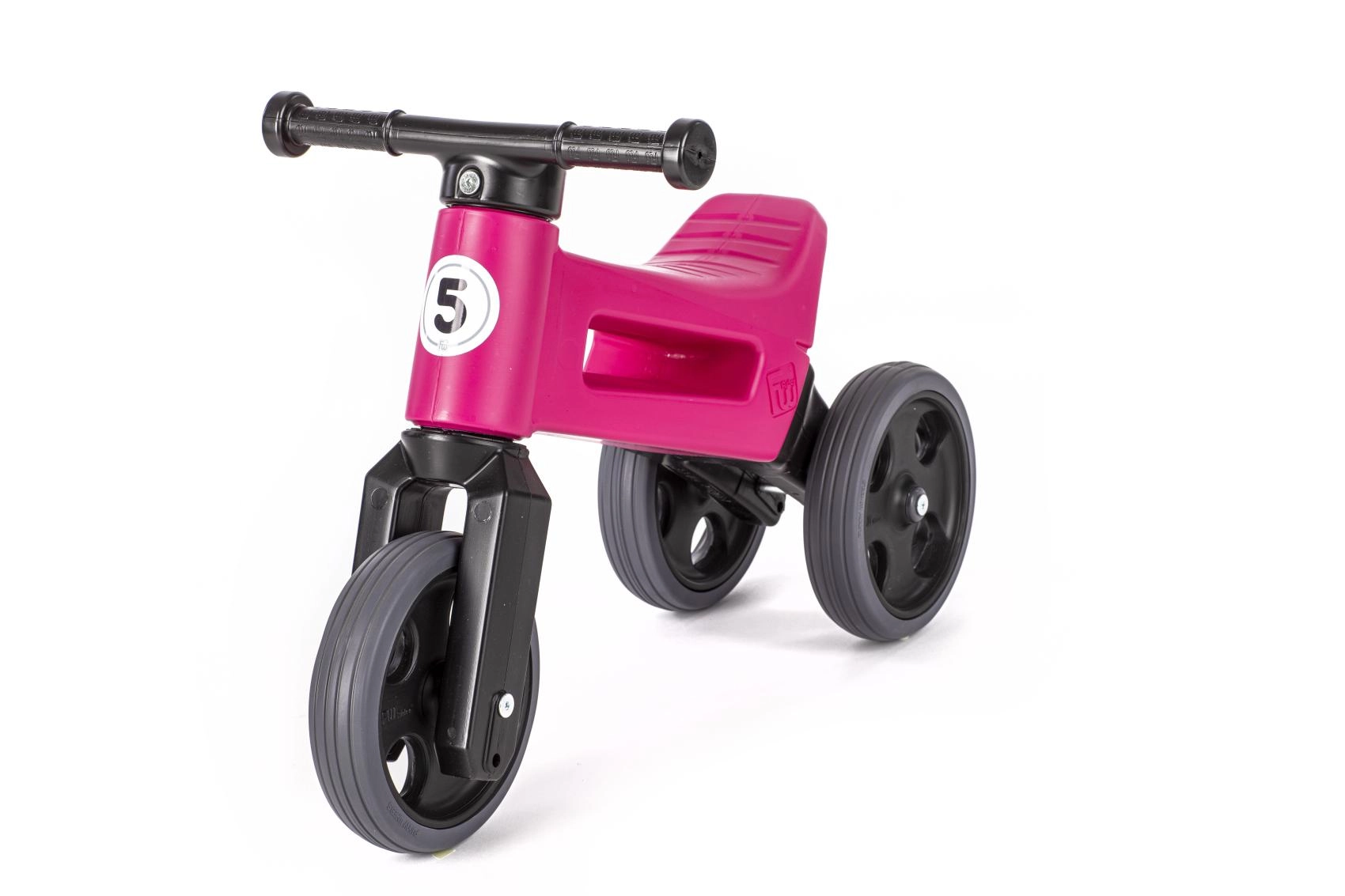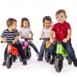 Des pneus silencieux qui ne glissent pas, un guidon ergonomique avec extrémités élargies pour protéger les mains, et une fourche à rotation limitée pour plus de sécurité. Plastique durable et non toxique aux jonctions lisses, facile à entretenir – un peu d’eau tiède et de savon suffisent.