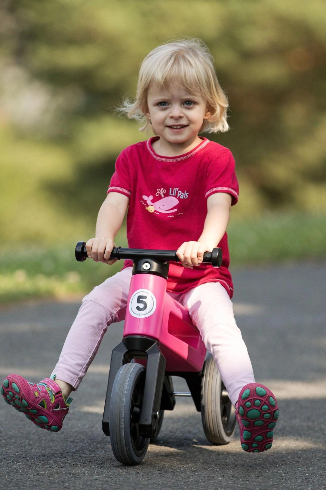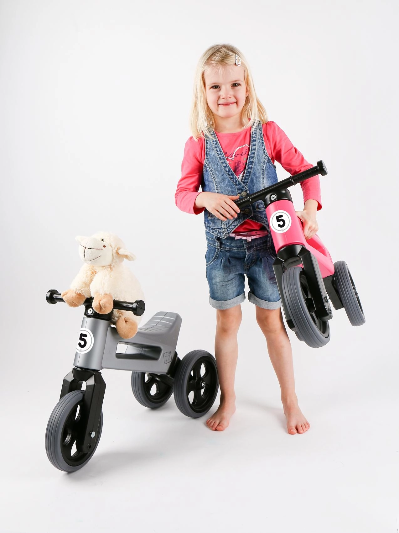 Commencez avec un tricycle stable puis, lorsque vient le moment d’entraîner l’équilibre, remplacez simplement les deux roues arrière par une seule. Idéal pour une transition en douceur vers le premier vélo.