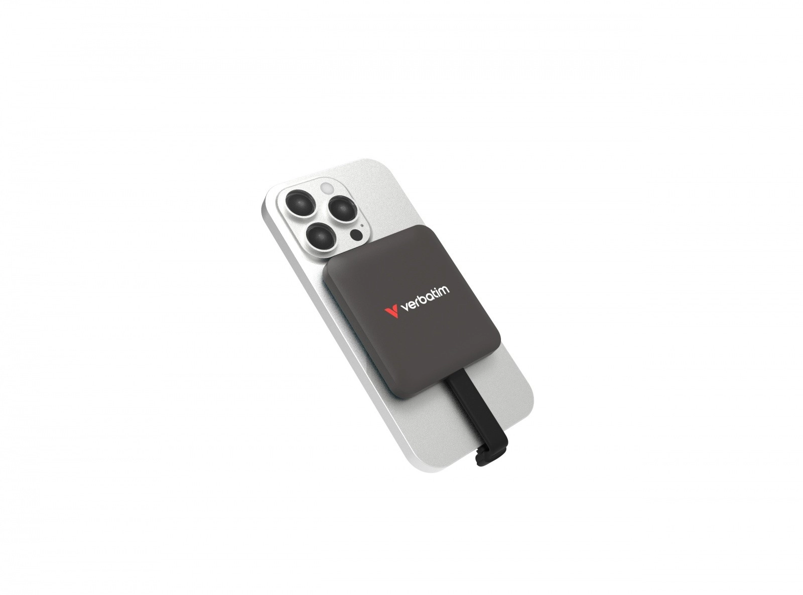 Verbatim SnapBack est un SSD externe magnétique moderne qui, grâce à la compatibilité MagSafe, se fixe fermement à l’arrière du téléphone. Une fixation stable sans supports ni enchevêtrement de câbles en fait le choix parfait pour le tournage en extérieur, le live streaming et les longues séances photo. La prise en charge de Apple ProRes 4K/60 i/s permet d’enregistrer directement sur le disque et de libérer la mémoire du téléphone.
