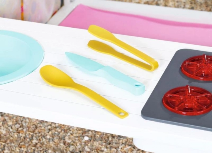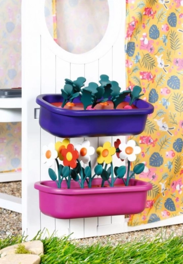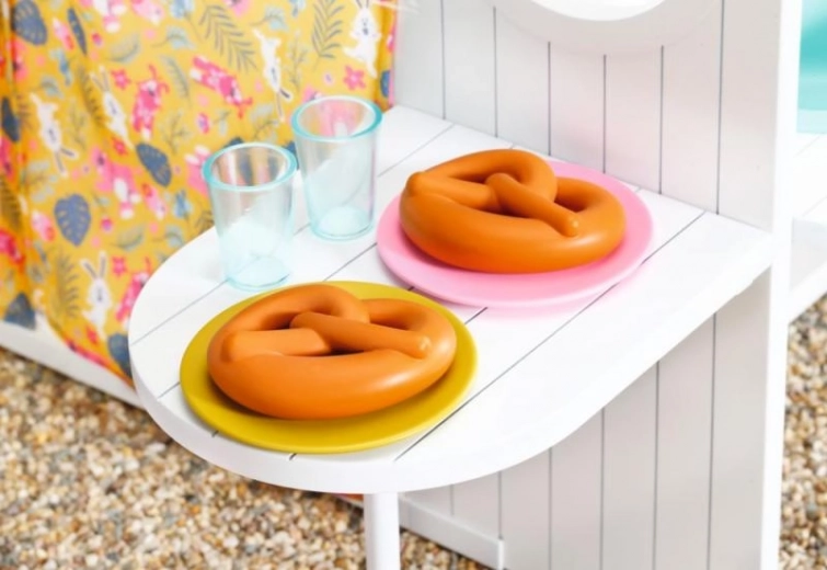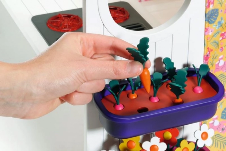 La maison est équipée de bacs de plantation et d’un potager pour récolter des ingrédients pour des dîners imaginaires. Les enfants peuvent préparer les repas sur la cuisinière et dresser la table pour leurs poupées, en servant des salades et des bretzels.