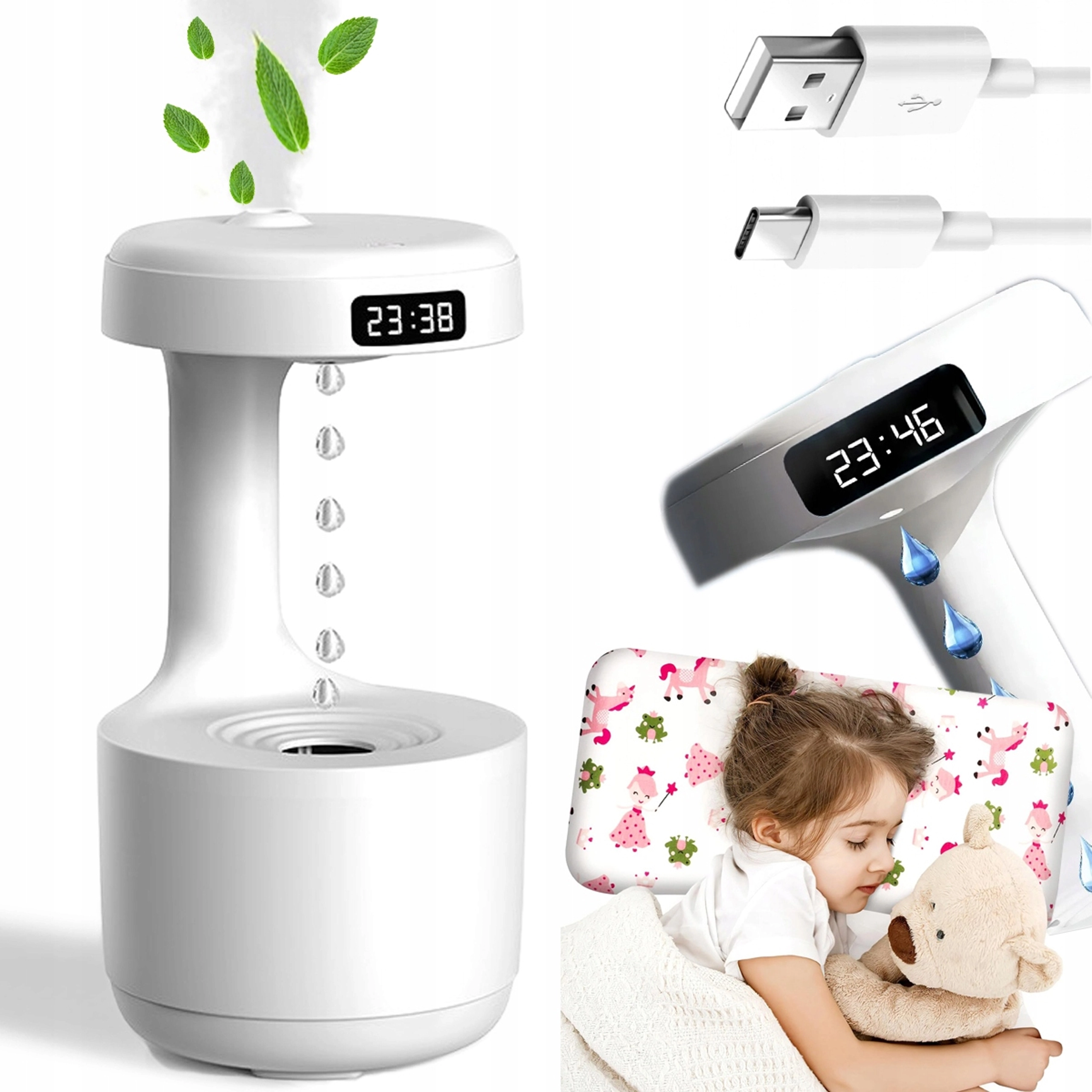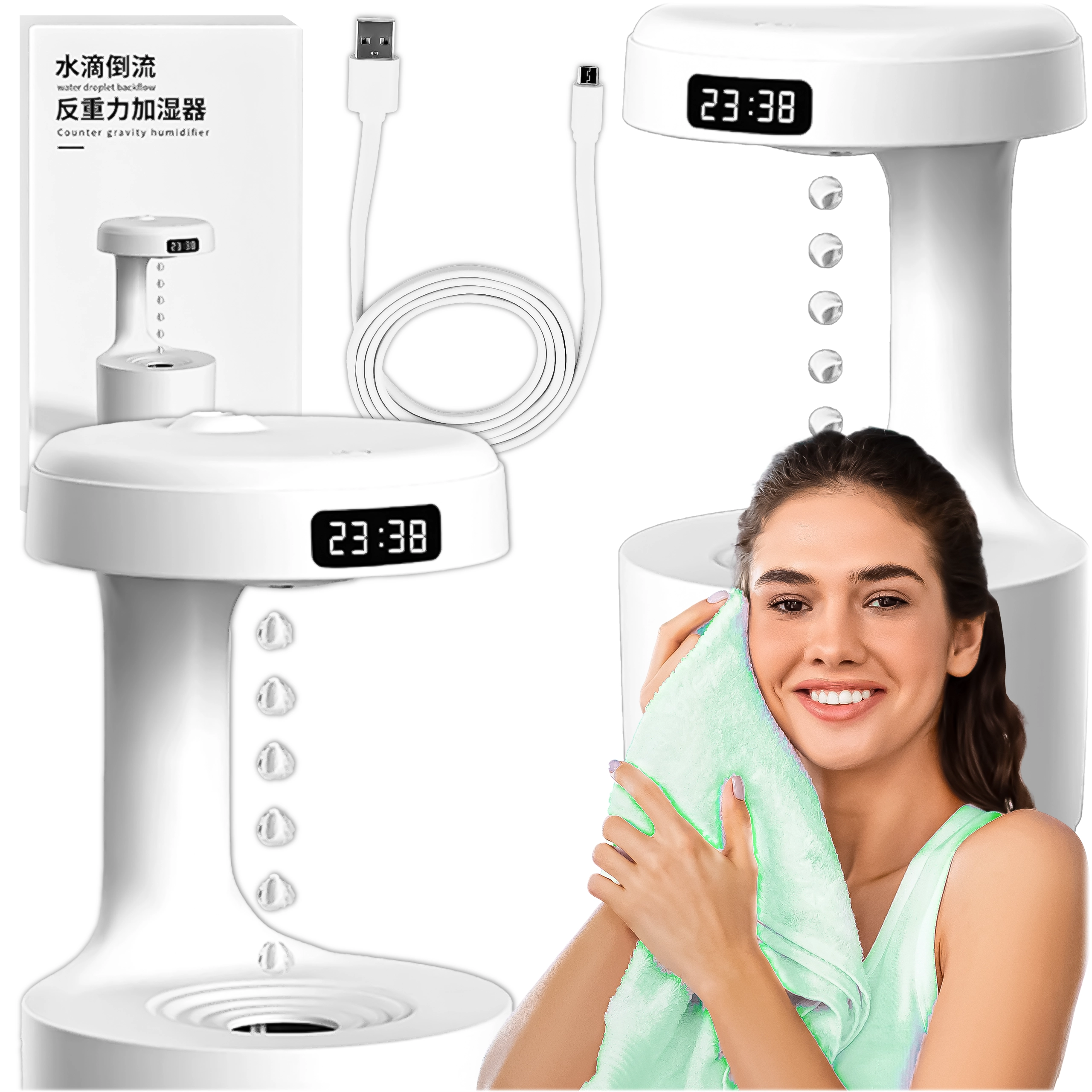 L’humidificateur d’air antigravité offre l’effet visuel saisissant des « gouttes qui montent » tout en augmentant efficacement l’humidité intérieure. Grâce à une technologie avancée, il génère une fine brume qui aide à atténuer l’air sec, l’irritation des muqueuses et facilite la respiration de jour comme de nuit. L’écran LED intégré affiche l’heure et l’état, tandis que le fonctionnement silencieux ne perturbe pas le sommeil.