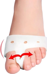Accessoire en silicone pratique pour un meilleur confort à la marche et lors du port quotidien de chaussures. Le séparateur élargit délicatement l’espace entre le gros orteil et le deuxième orteil, aidant ainsi au bon positionnement des orteils et réduisant la pression sur l’articulation du gros orteil. Le silicone souple et flexible s’adapte à la forme du pied et procure un soulagement immédiat des frottements et des points de pression.