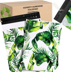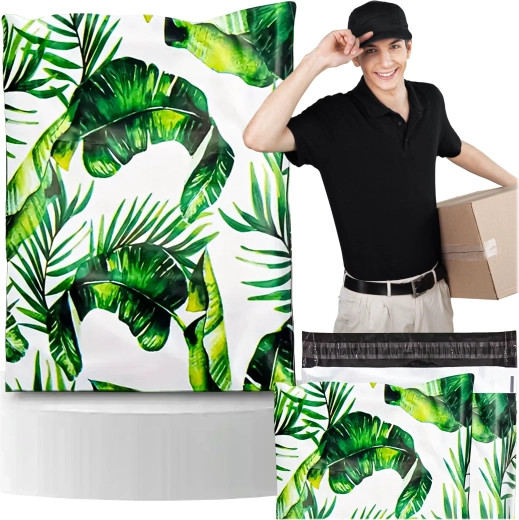 Enveloppes de courrier élégantes et résistantes avec motif de feuilles tropicales, dimensions 255 × 370 mm, lot de 50 pièces. Grâce à la bande adhésive, elles assurent un emballage rapide, une fermeture sécurisée et une protection contre l’humidité pendant le transport.