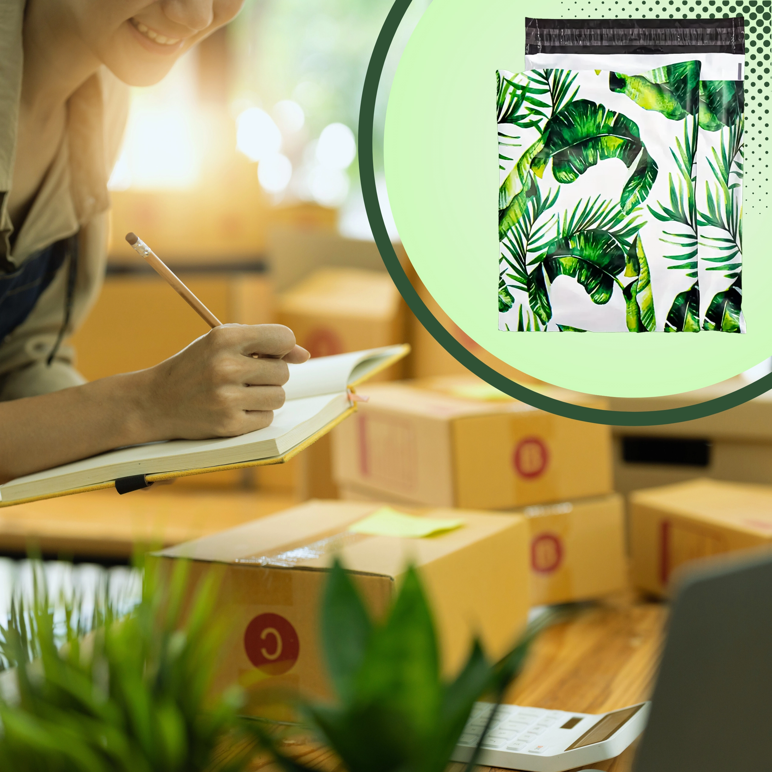 Vous cherchez un emballage fiable et attrayant pour votre e‑shop ou vos envois domestiques ? Ces enveloppes plastiques poly mailers au motif de feuilles vertes allient résistance, faible poids et aspect professionnel. Le format 255 × 370 mm est idéal pour le textile, les accessoires, les imprimés et autres produits légers.
