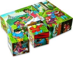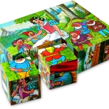 Avec ce grand classique parmi les jouets, les enfants découvrent de manière ludique l’histoire de Blanche‑Neige. Les blocs en bois sont solides, agréables au toucher et, grâce aux impressions, permettent de créer plusieurs images différentes. Ils sont parfaits pour développer la coordination œil‑main, la patience et la pensée logique.