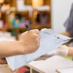 Gagnez du temps et des coûts à l’expédition. Ces poly mailers blancs B3 combinent une fermeture rapide sans ruban, un scellé tamper-evident (altération visible) et un poids réduit pour économiser sur l’affranchissement. Le film imperméable protège en plus le contenu de l’humidité et des saletés.