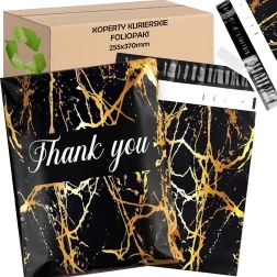 Enveloppes de coursier pratiques et résistantes de 255 × 370 mm avec un motif élégant de marbre doré et l’inscription Thank You. Idéales pour les e-shops et l’emballage sécurisé des envois. Grâce à la bande autocollante, l’emballage est rapide et simple, tandis que le matériau robuste protège le contenu contre les dommages et l’humidité.