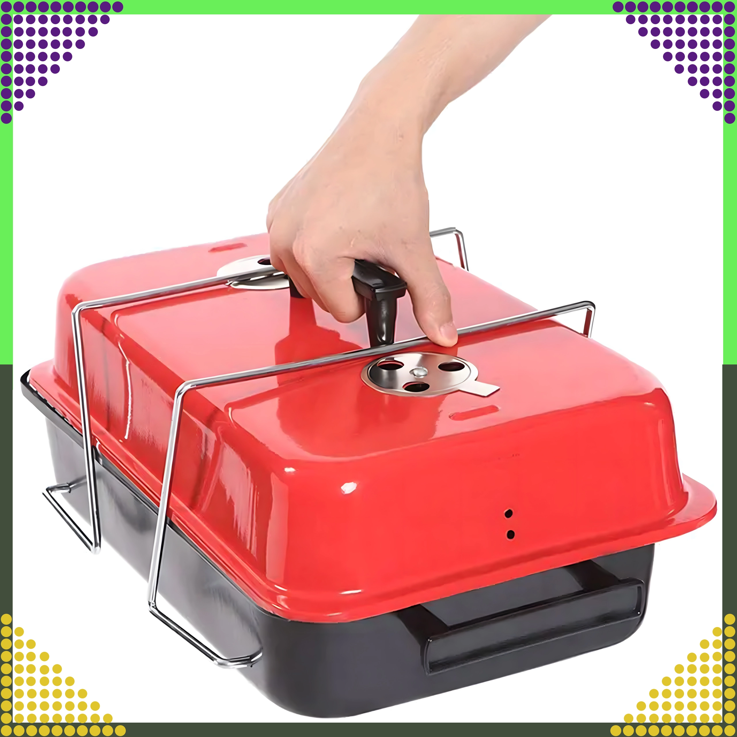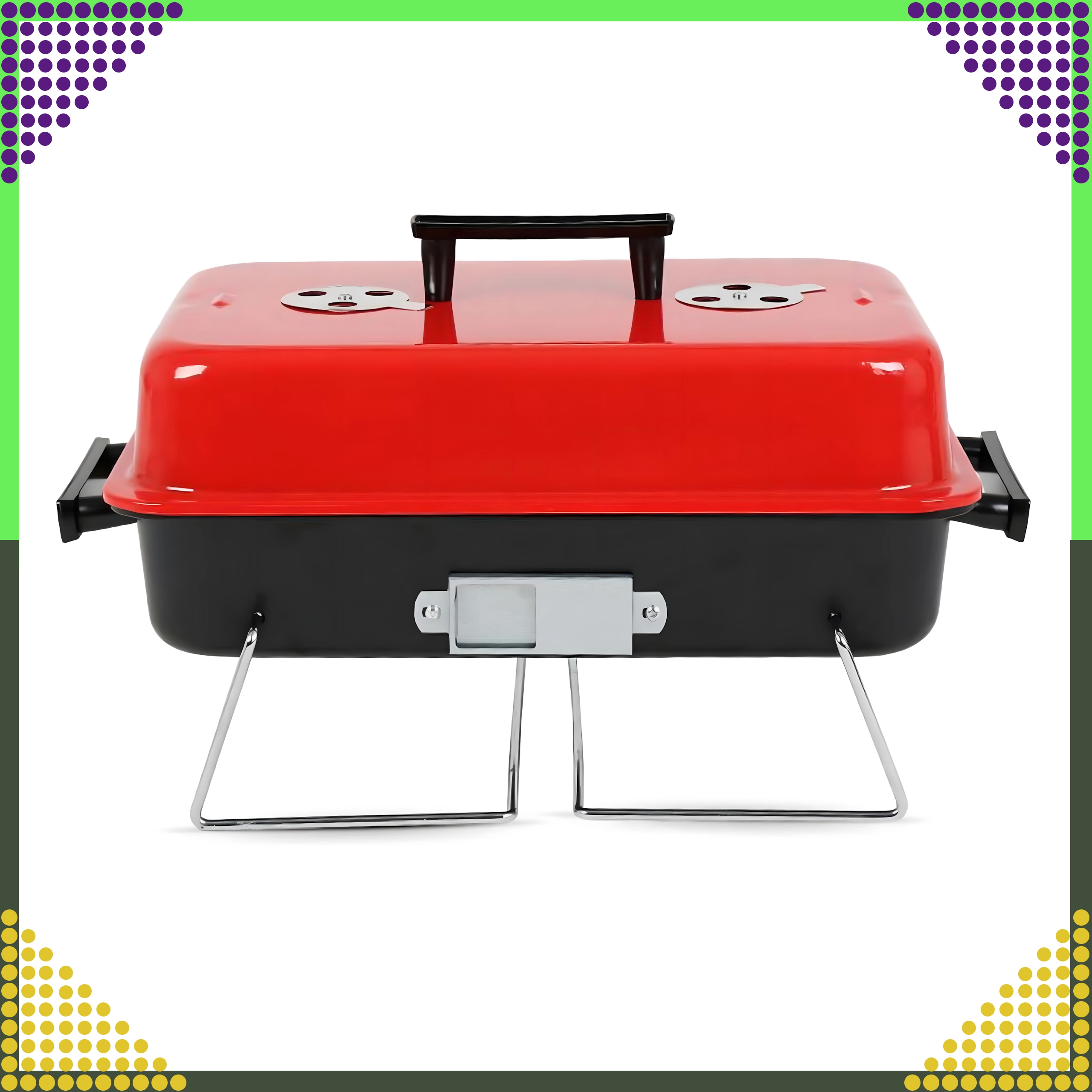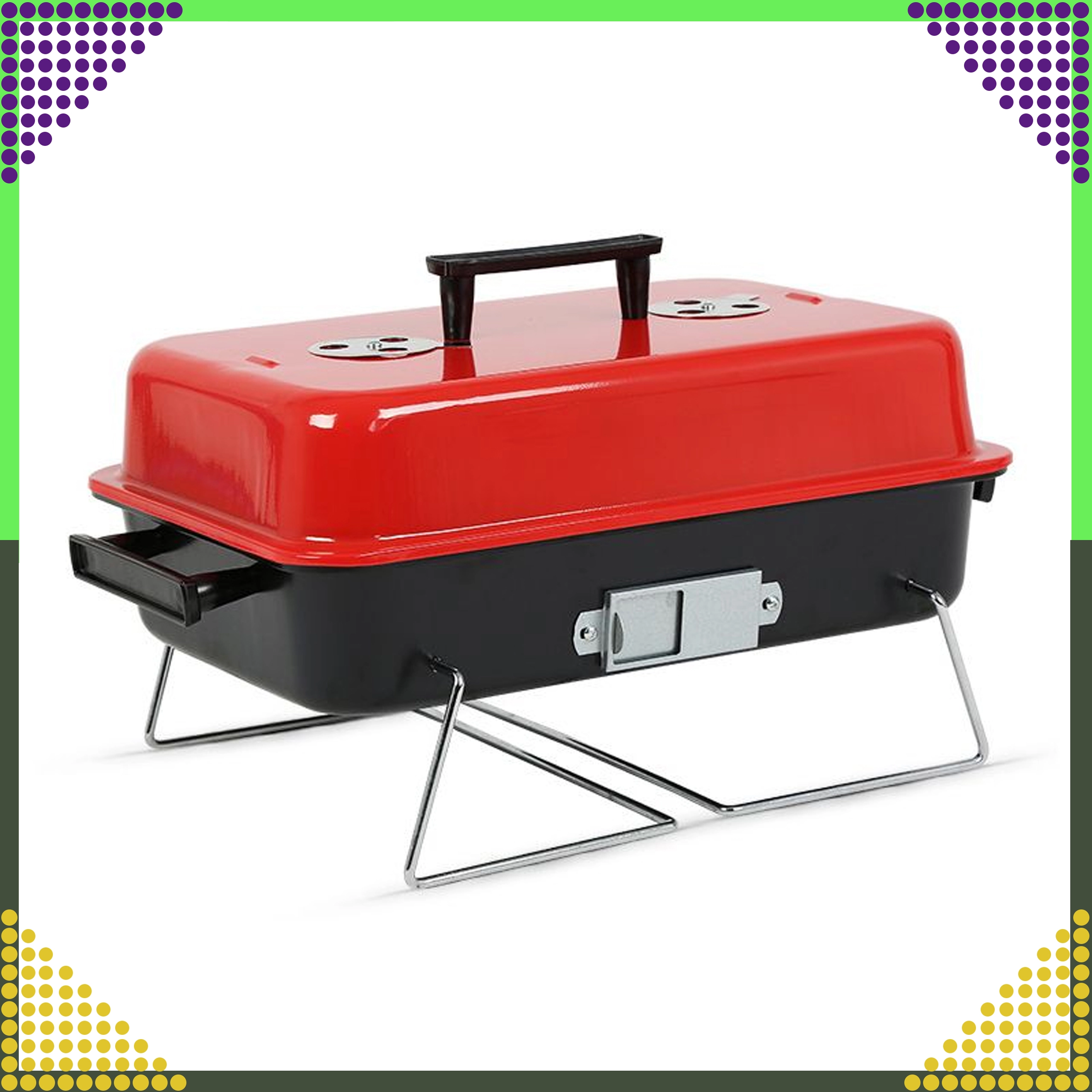 Ce barbecue de table compact au charbon avec couvercle est idéal pour le camping, les pique-niques, la plage et le jardin. Grâce à ses pieds pliables et au verrou du couvercle, il se transporte facilement, tient dans le coffre de la voiture et offre une régulation pratique de la température via des ouvertures d’aération. La grille chromée assure une cuisson homogène et ses dimensions compactes 43 × 28 × 26 cm facilitent le rangement.