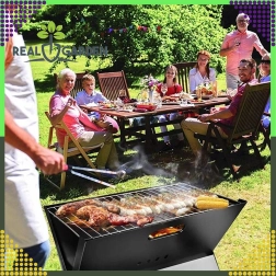 Barbecue compact au charbon de bois qui, une fois plié, se transforme en une pratique structure de type valise. Il est léger, pliable et facile à transporter, idéal pour le camping, les pique-niques et les barbecues de jardin. Il offre une grande surface de grille, est résistant aux hautes températures et prêt à l’emploi en quelques secondes.