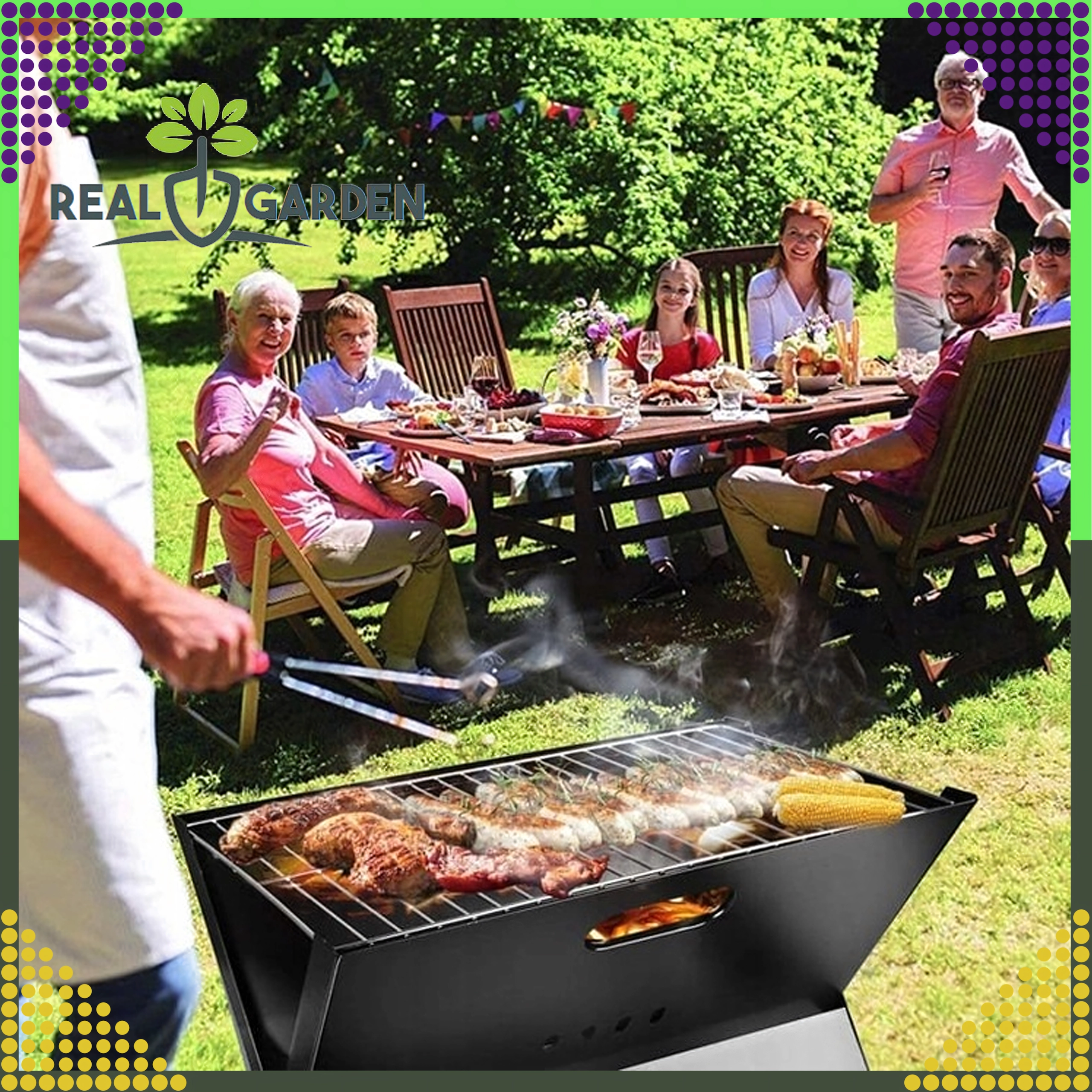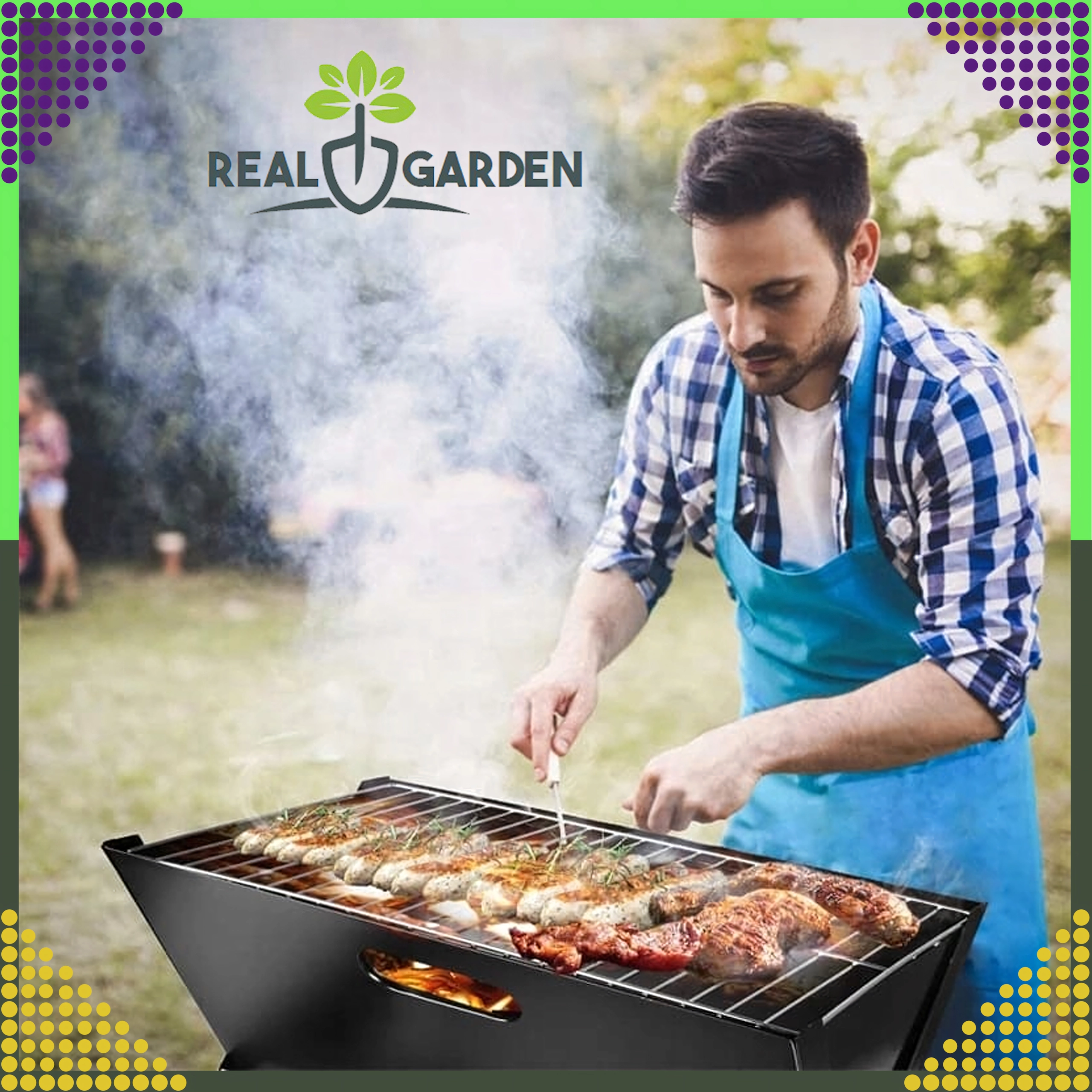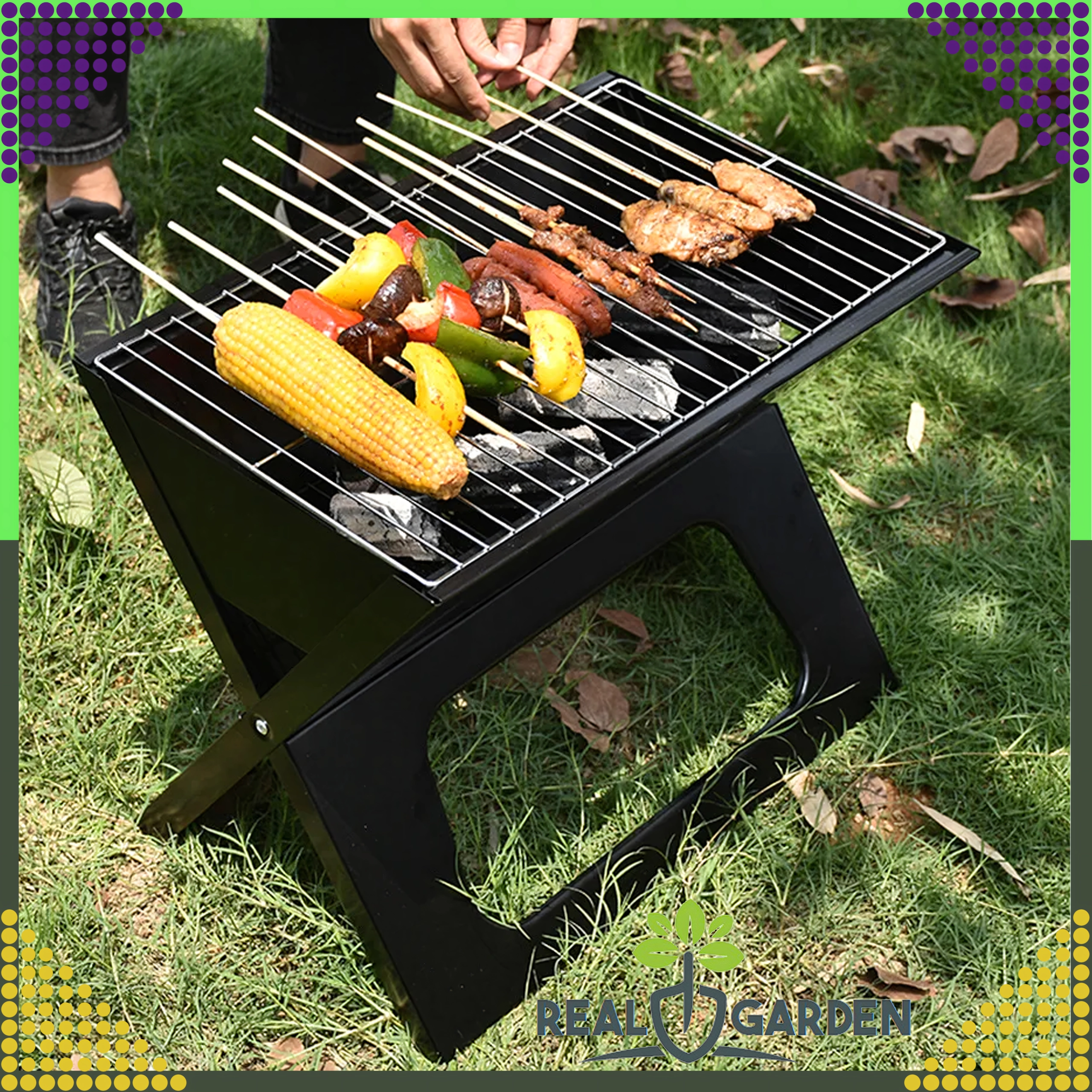Le barbecue offre une grille suffisamment grande pour vos spécialités préférées – des brochettes et saucisses aux légumes, poissons ou blancs de poulet. Il est résistant aux hautes températures, stable et conçu pour un montage rapide sans outils, afin que vous profitiez d’un barbecue sans souci partout.