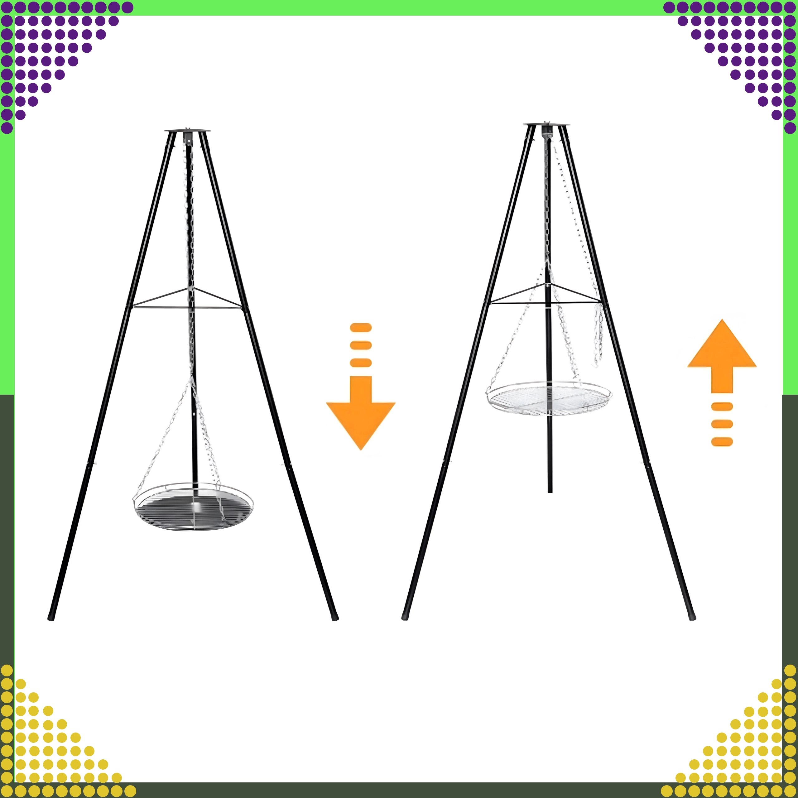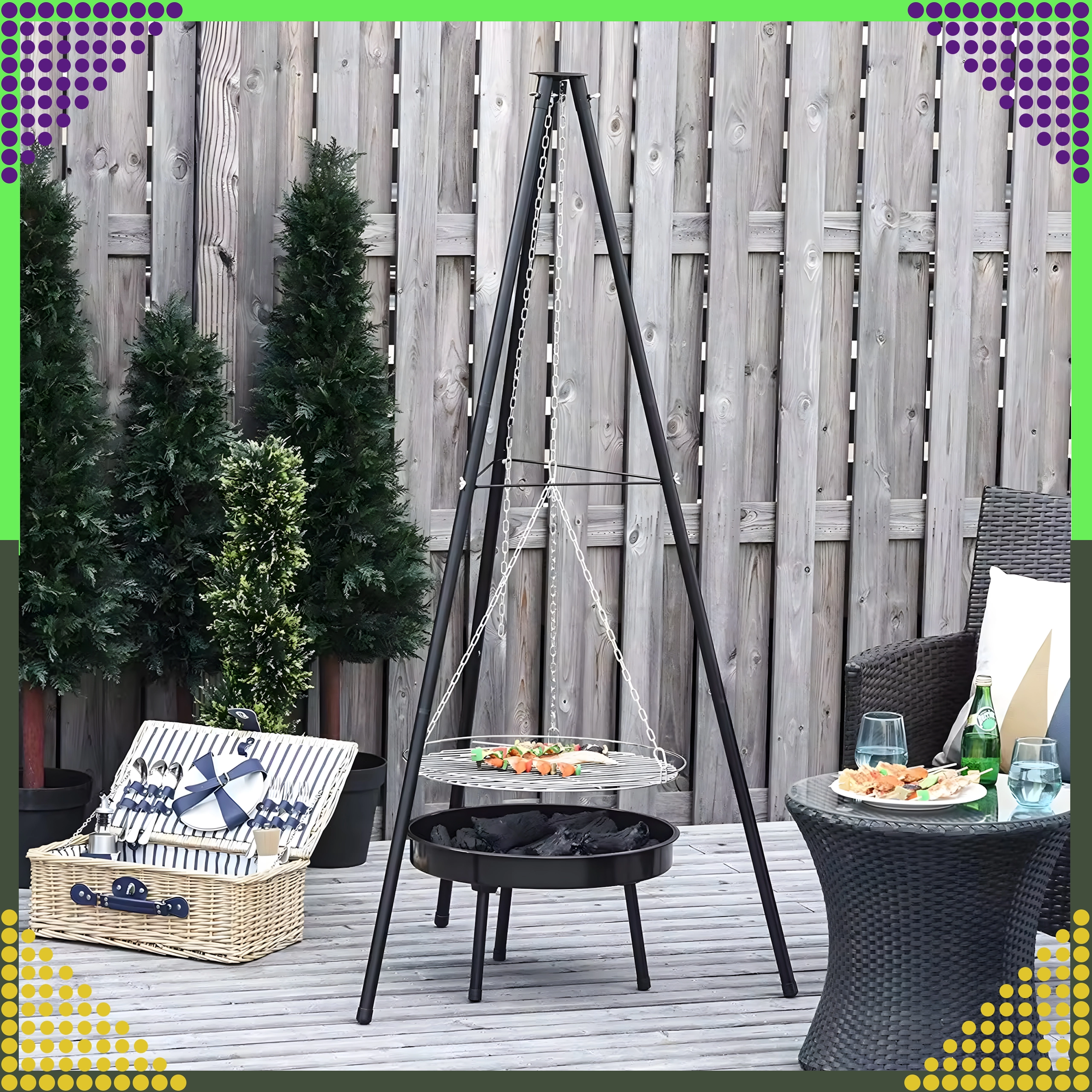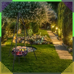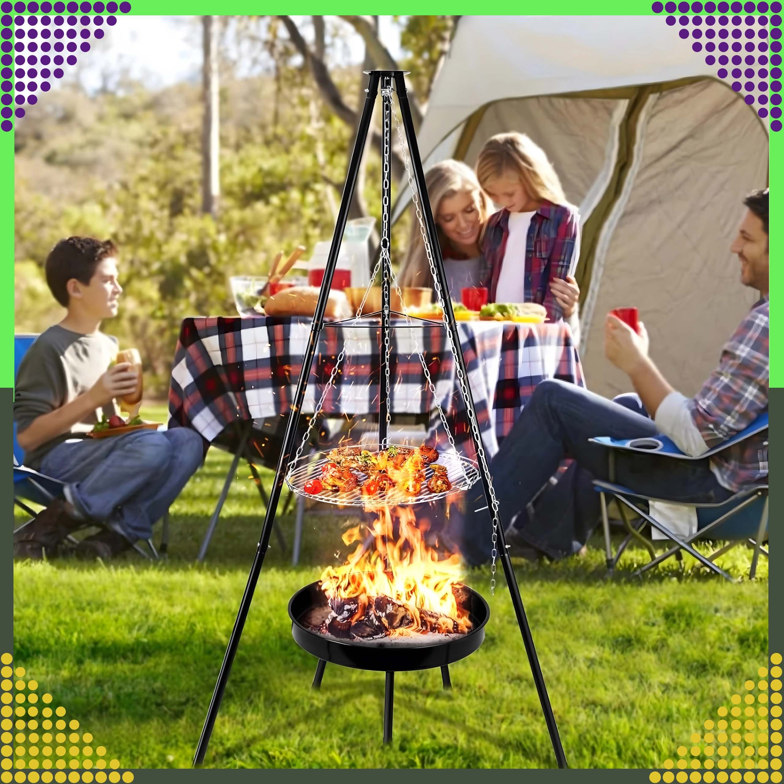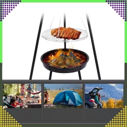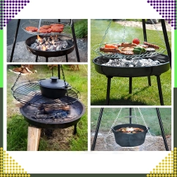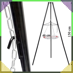 La structure à trois pieds en acier peint par poudrage résiste aux hautes températures et assure une cuisson au barbecue en toute sécurité, au jardin comme au camping.