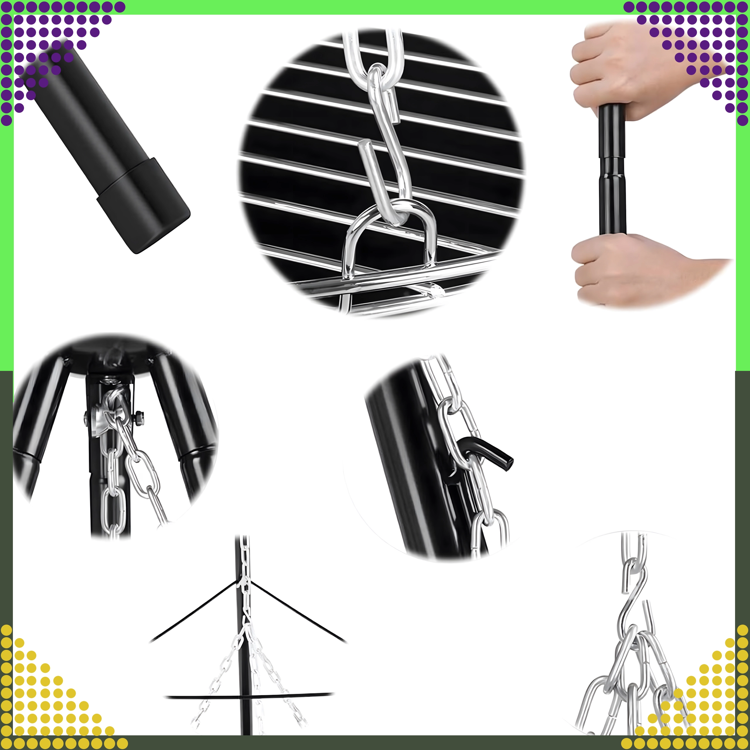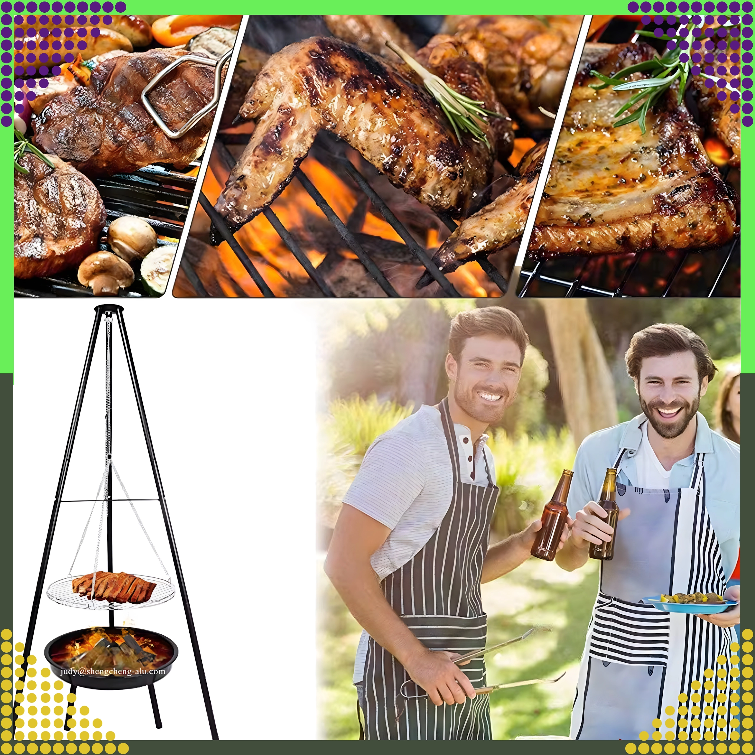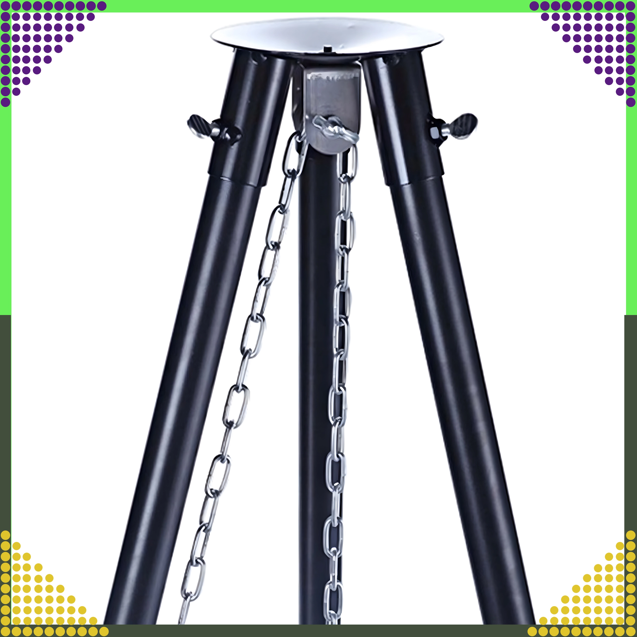 La structure à trois pieds en acier peint par poudrage résiste aux hautes températures et assure une cuisson au barbecue en toute sécurité, au jardin comme au camping.