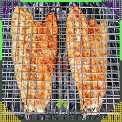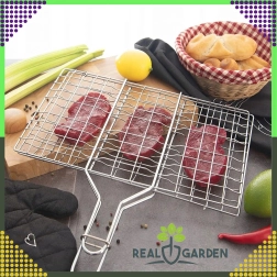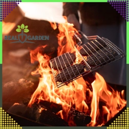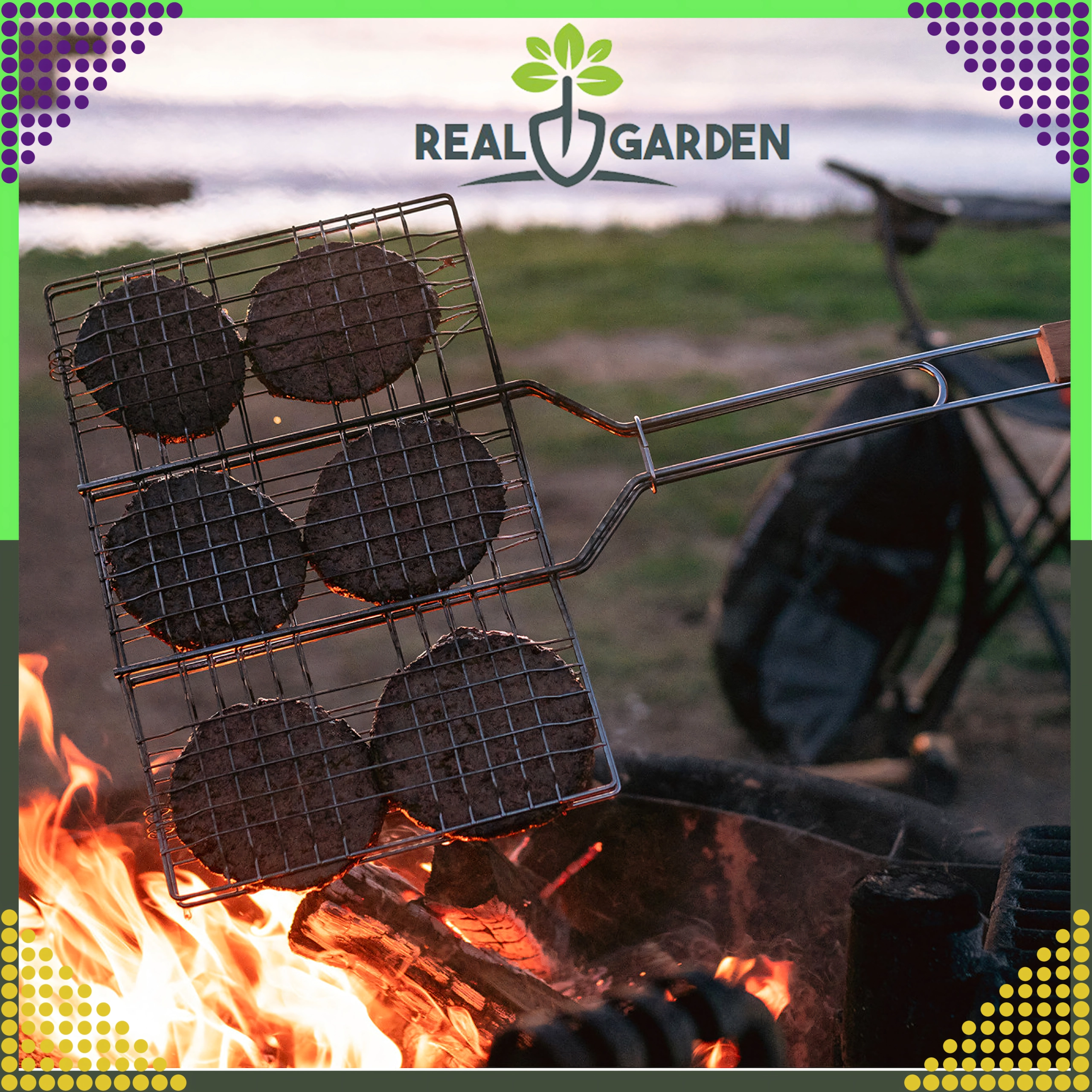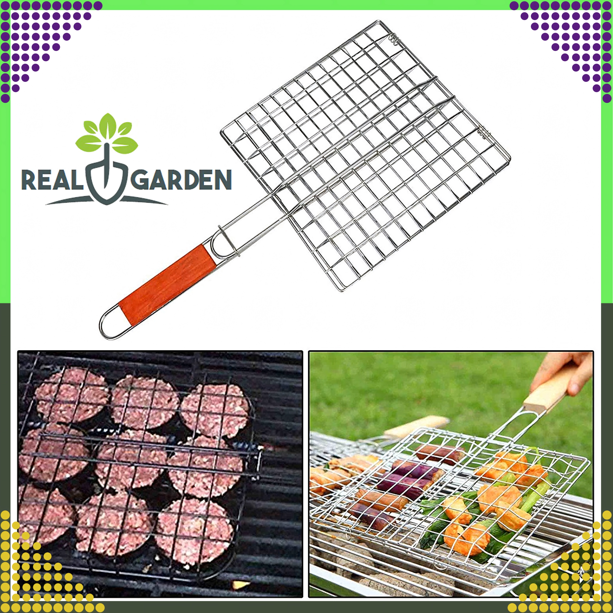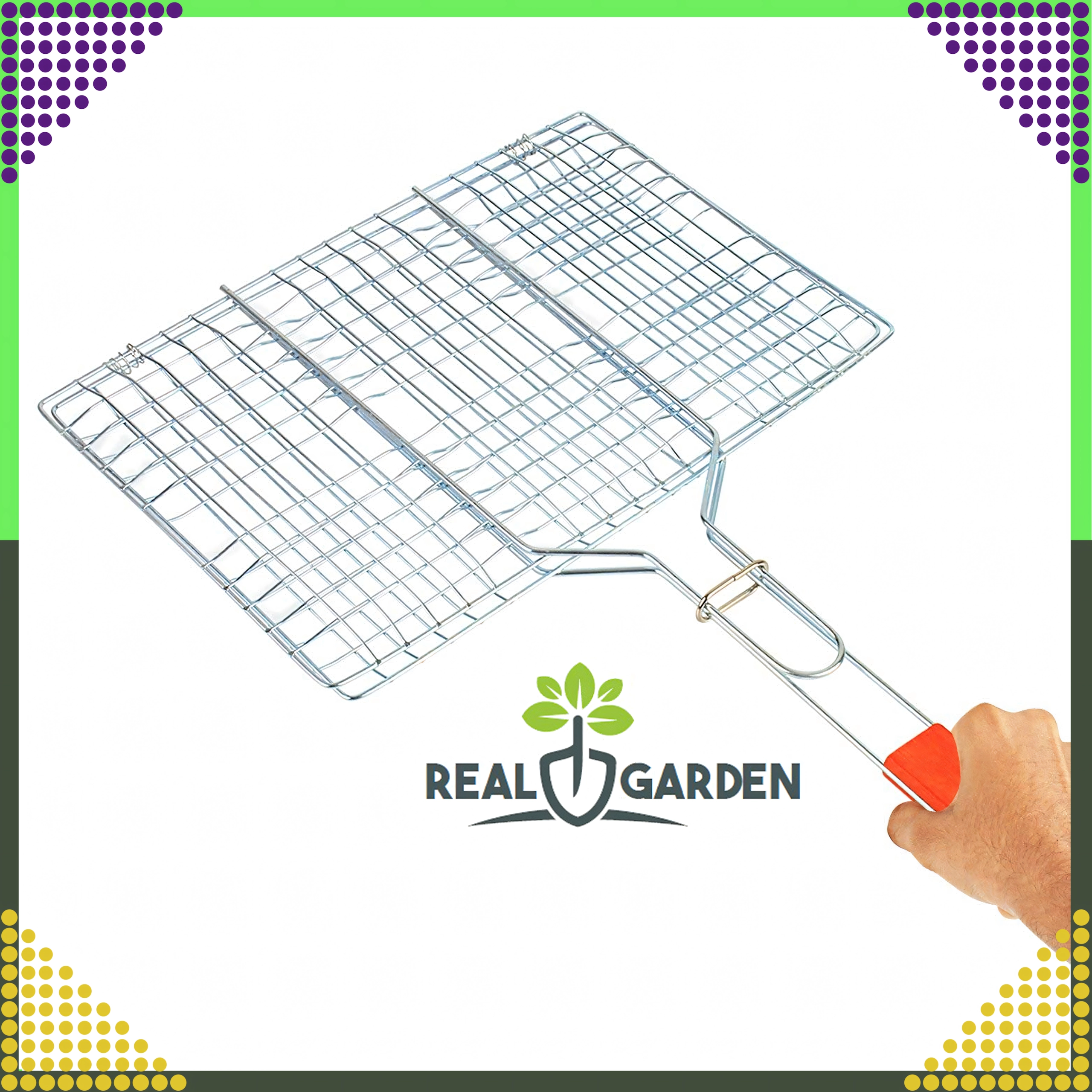 Grille de barbecue double face pratique avec grille verrouillable et poignée en bois pour un retournement sûr et confortable. Idéale pour les burgers, la viande, le poisson et les légumes. La surface chromée facilite le nettoyage et la prise ferme empêche les aliments de se désagréger pendant la cuisson.