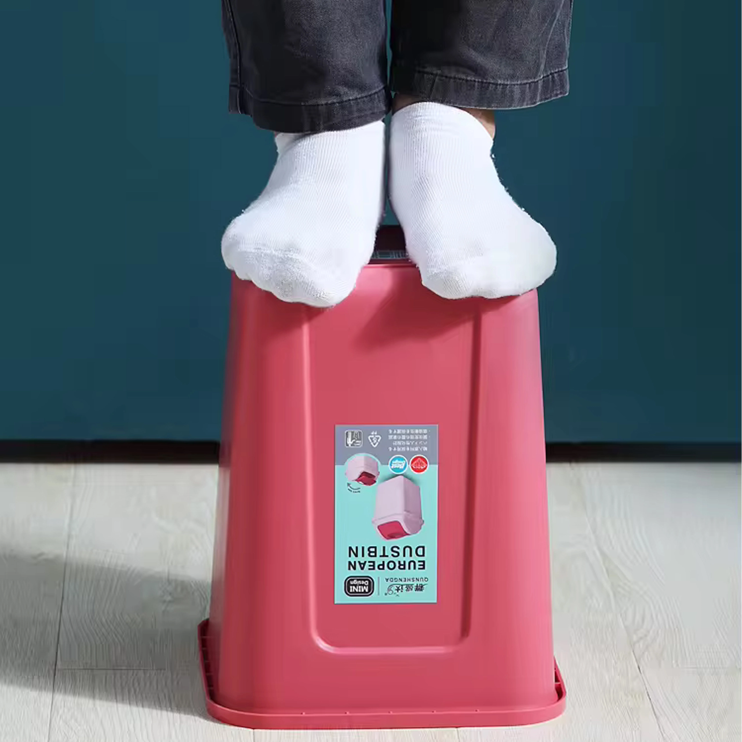 Grâce au plastique résistant, la poubelle est légère tout en restant stable et facile à entretenir – il suffit d’essuyer la surface avec un chiffon humide. Compatible avec les sacs poubelle standard, le remplacement est rapide et propre.