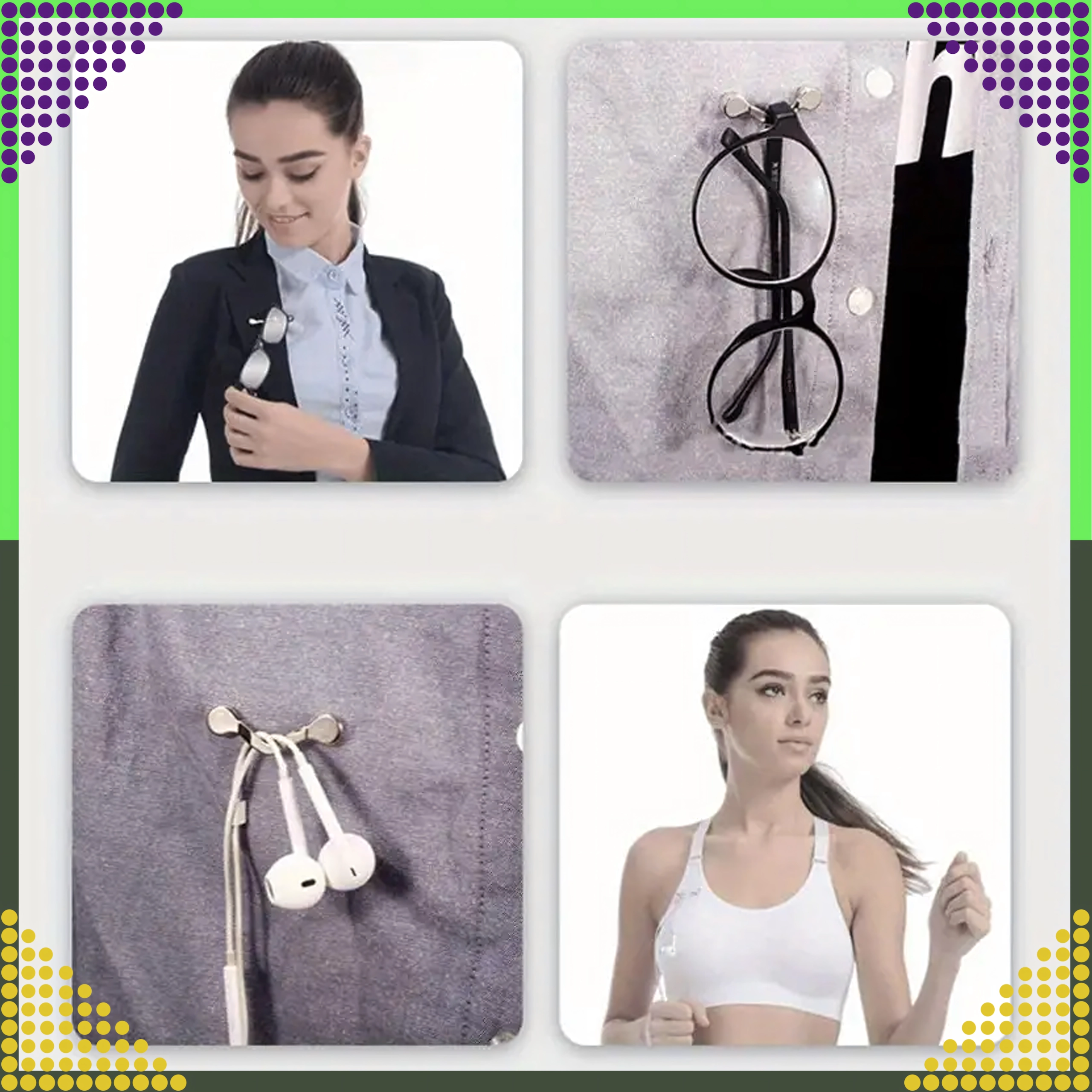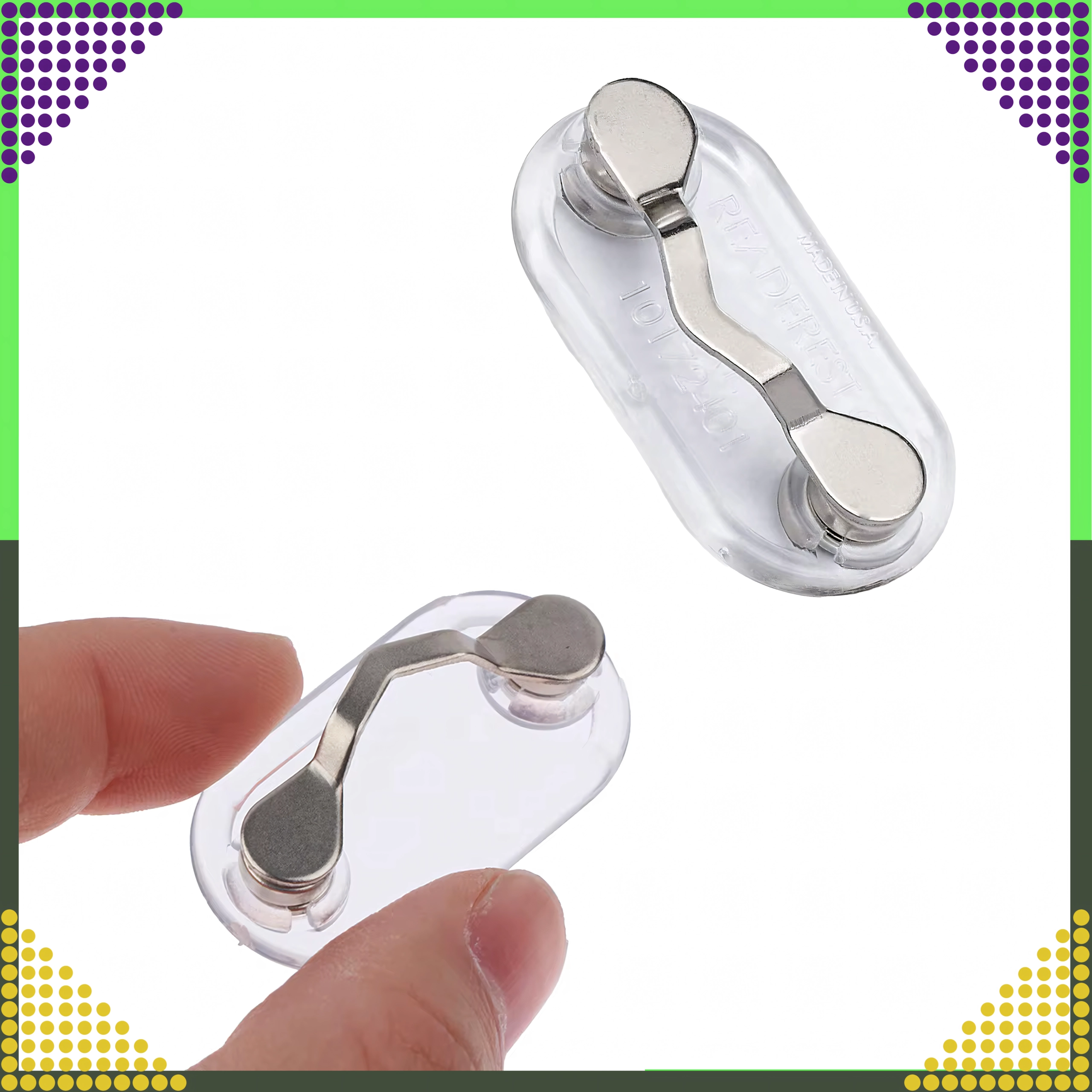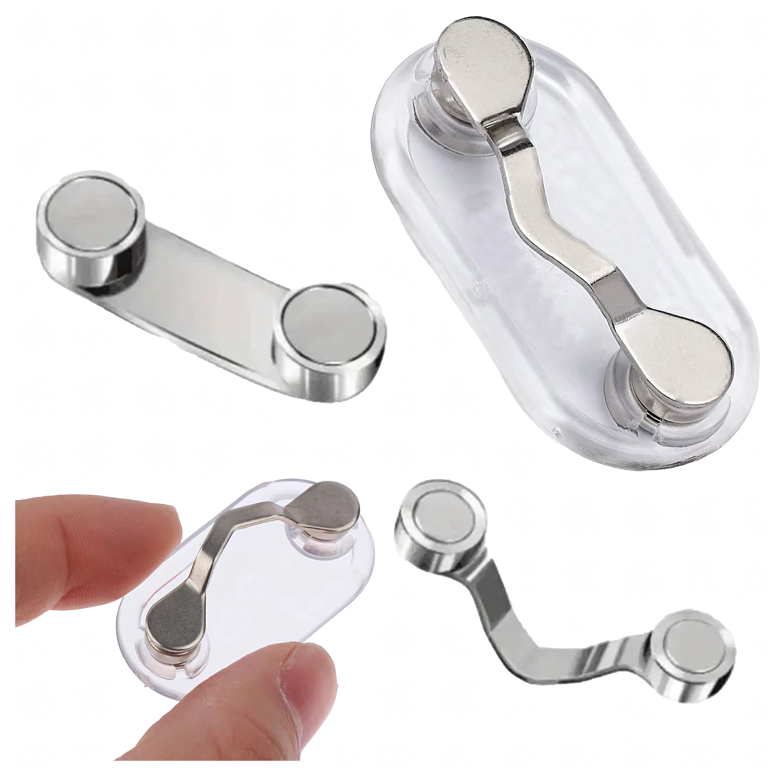 Ce porte-accessoires magnétique pratique est une solution élégante pour garder lunettes, écouteurs ou badge d’identification toujours à portée. La paire d’aimants puissants se fixe à travers le tissu et crée un point d’ancrage stable sans abîmer les vêtements. La finition métallique avec base transparente reste discrète et convient au bureau, en déplacement comme pour le sport.