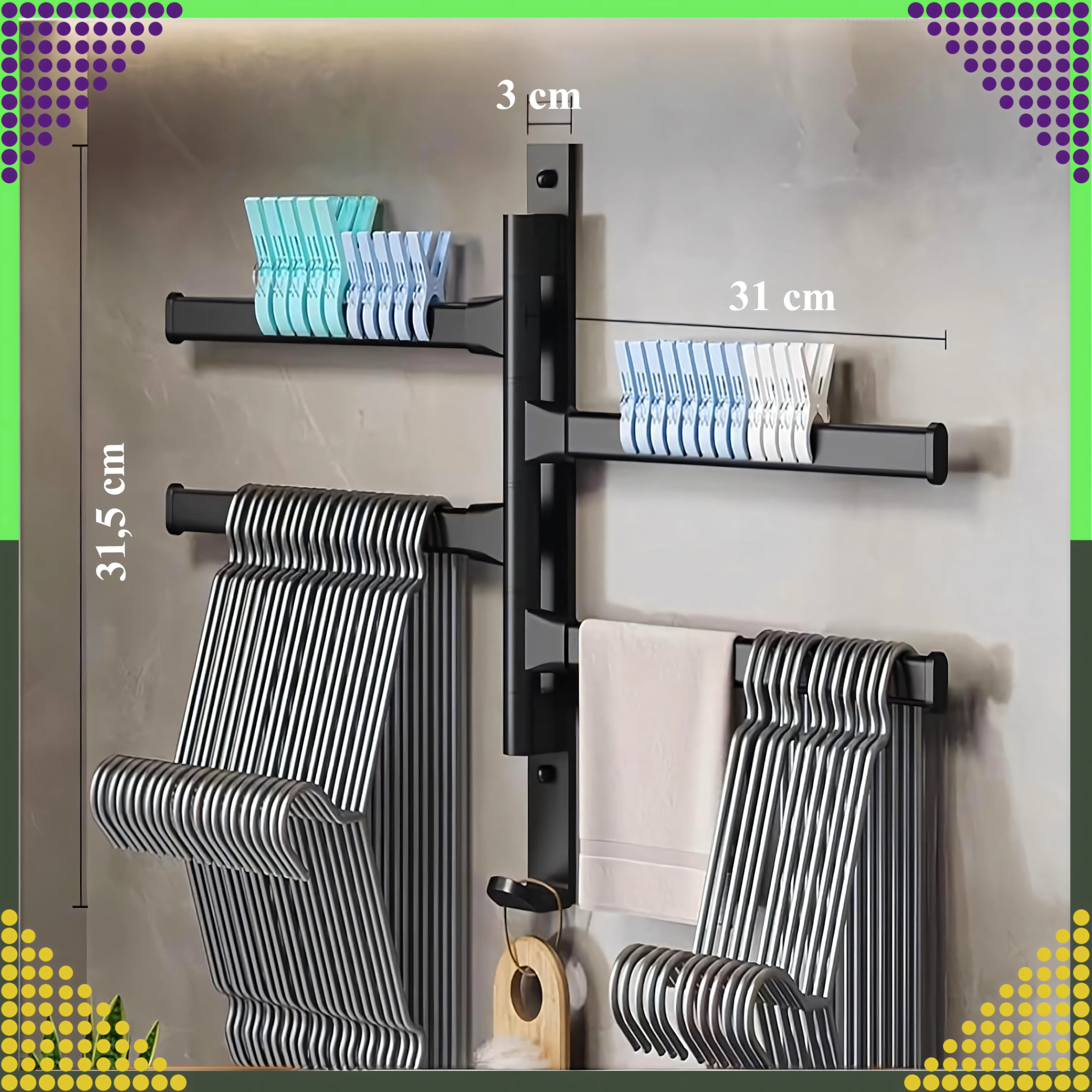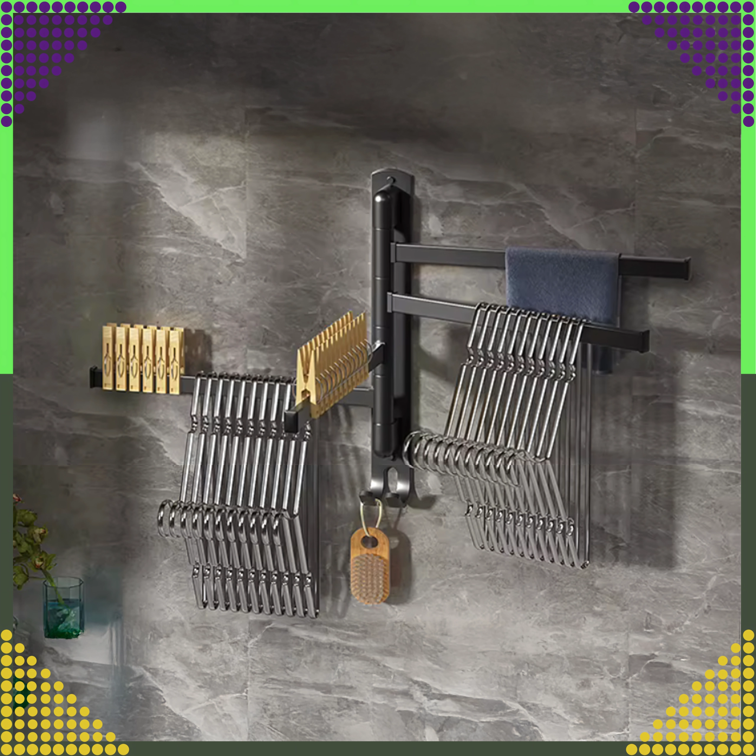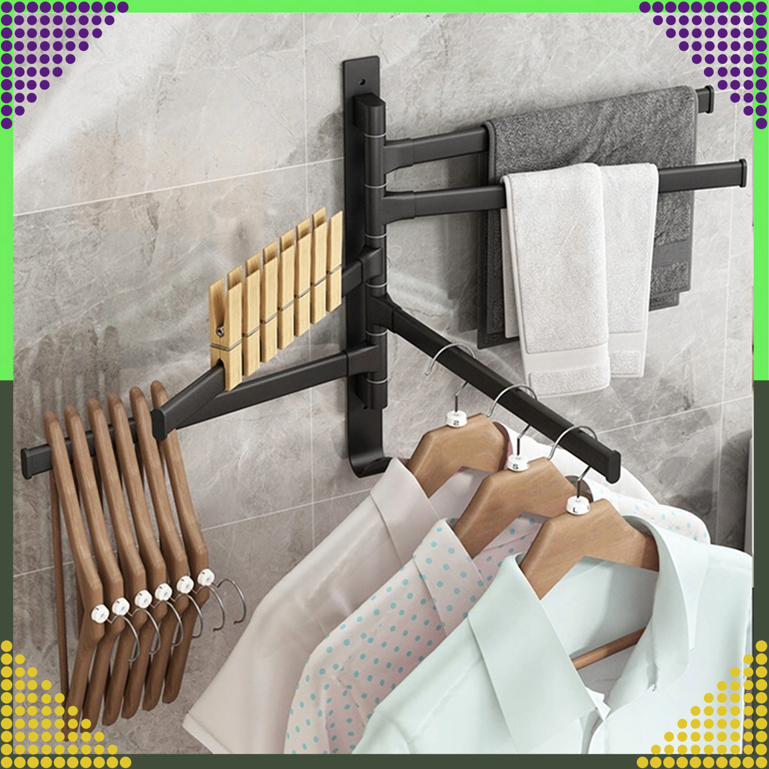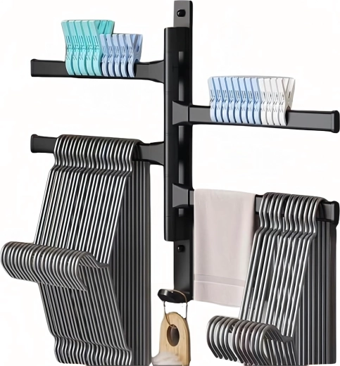 Les bras s’ouvrent séparément pour suspendre plusieurs serviettes en toute commodité et accélérer le séchage sans contact entre les textiles.