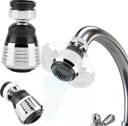 Aérateur universel 2‑en‑1 avec tête rotative 360° offrant deux modes de jet (jet doux et douchette), installation facile sans outils et économie d’eau jusqu’à 30 % – idéal pour tout évier et lavabo.