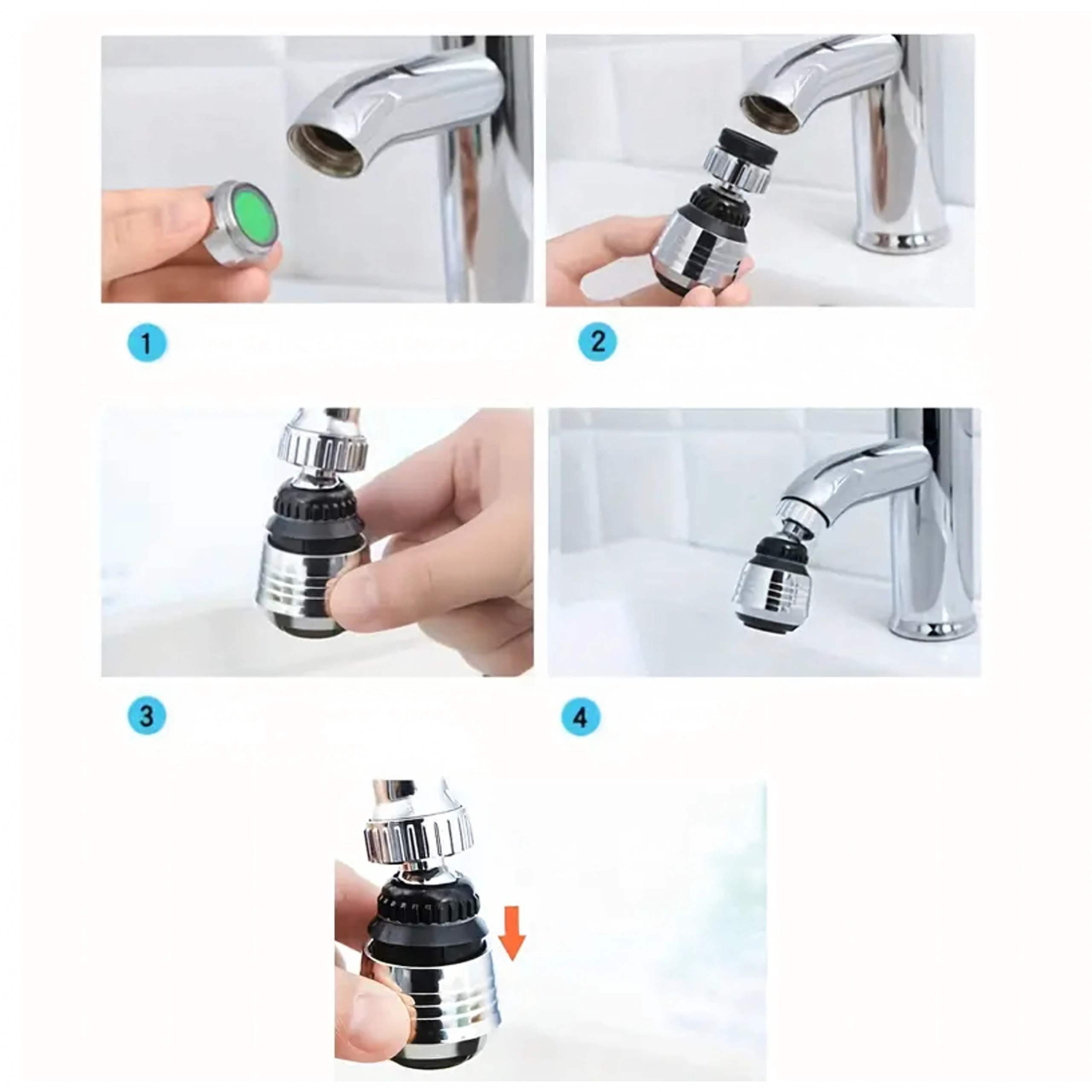 Aérateur rotatif 2‑en‑1 pour robinet de cuisine et de salle de bain, rotation 360°