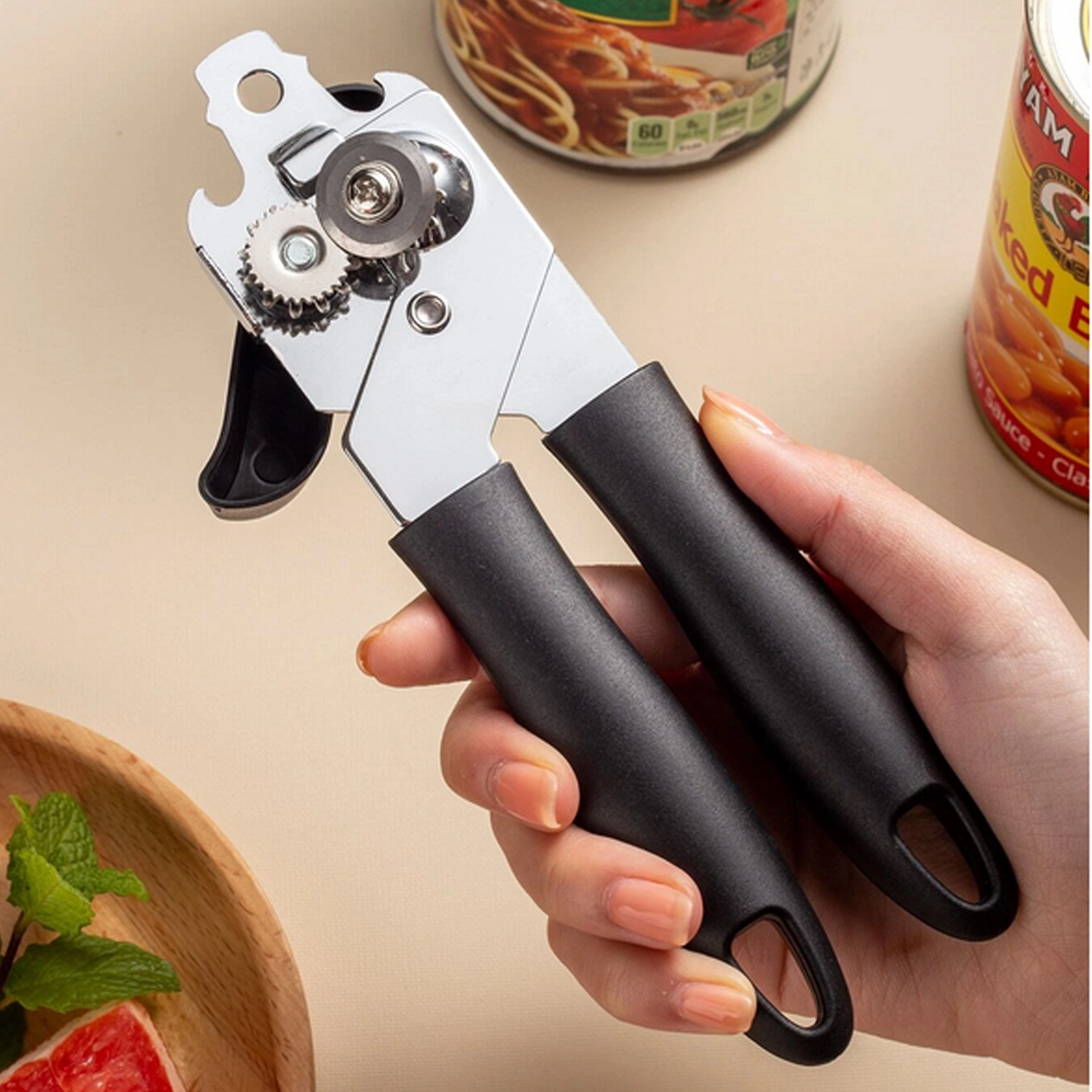 Simplifiez votre travail en cuisine avec un ouvre-boîtes manuel de qualité fabriqué en acier inoxydable. Grâce à sa roue de coupe tranchante et à son engrenage précis, il ouvre le couvercle en douceur et sans déchirure. Les poignées ergonomiques antidérapantes assurent sécurité et confort même lors d’une utilisation prolongée.