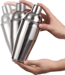 Shaker classique en trois pièces avec couvercle et passoire intégrée pour un refroidissement rapide et un service net sans glace.