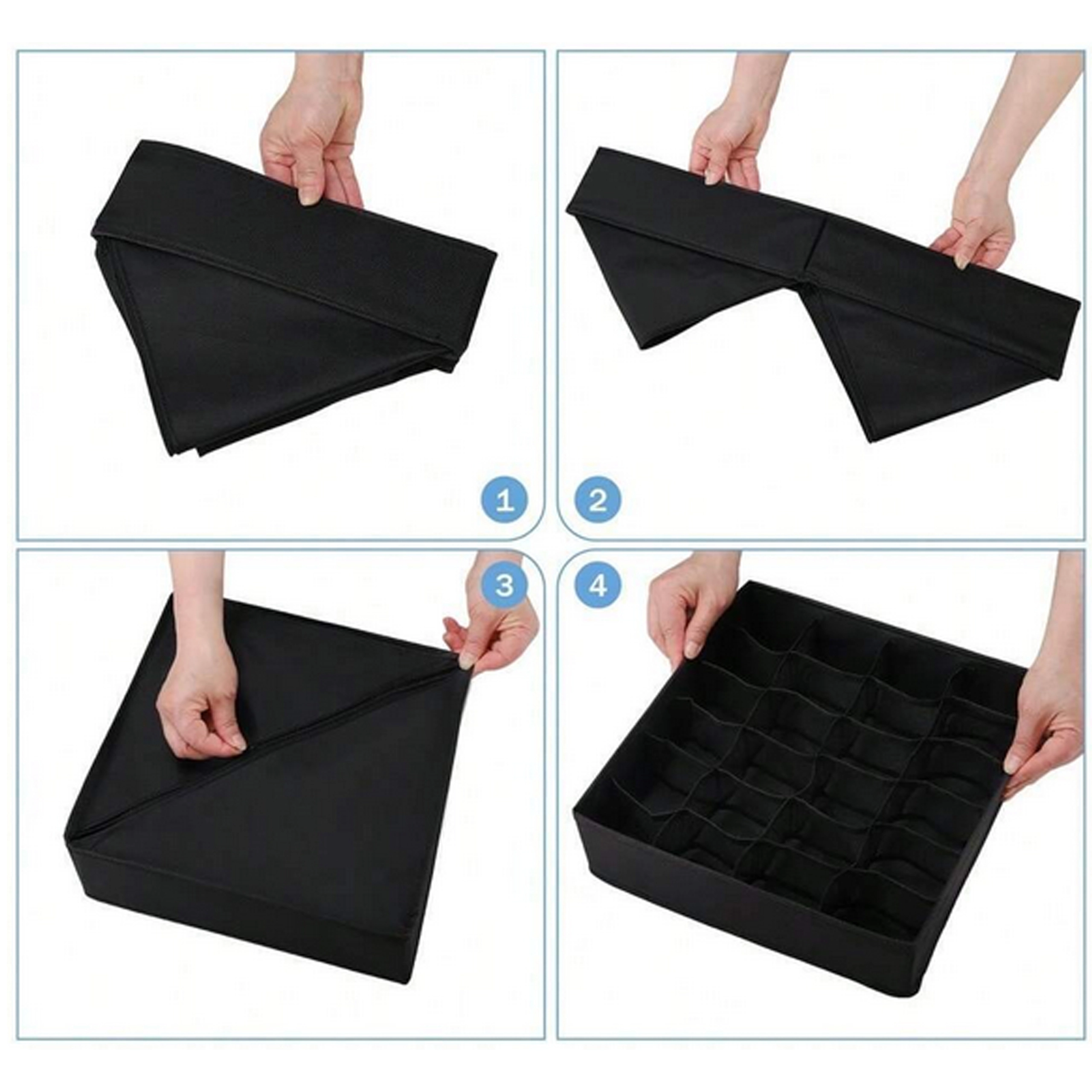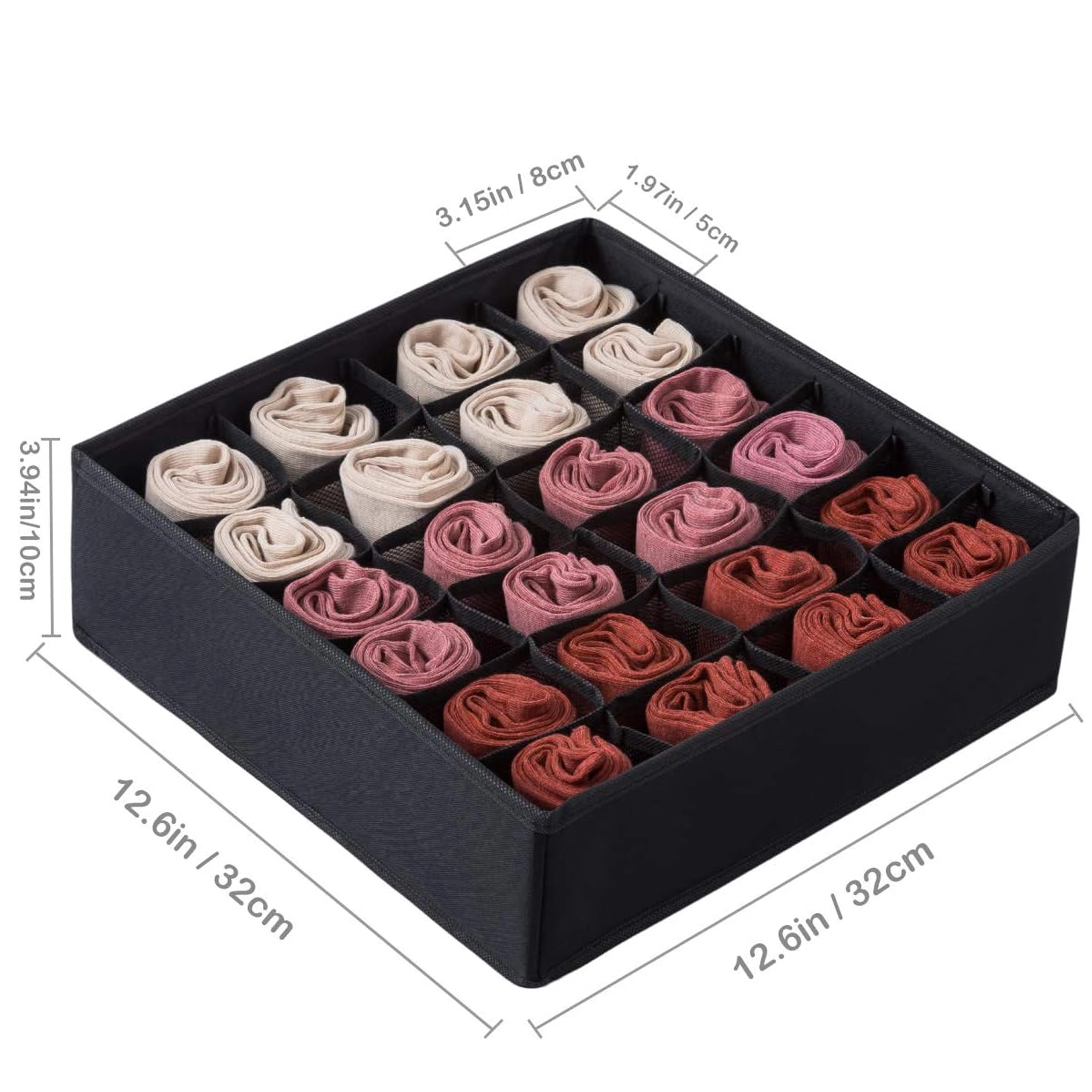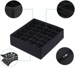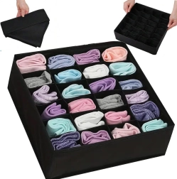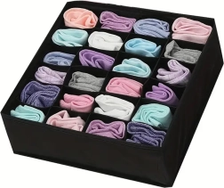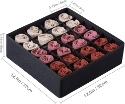 Ses dimensions 32 × 32 × 10 cm s’adaptent à la plupart des tiroirs et étagères ouverts standards. Excellent choix pour chaussettes, culottes, soutiens-gorge, collants, cravates et accessoires. Le montage est rapide et simple – prêt en quelques secondes.