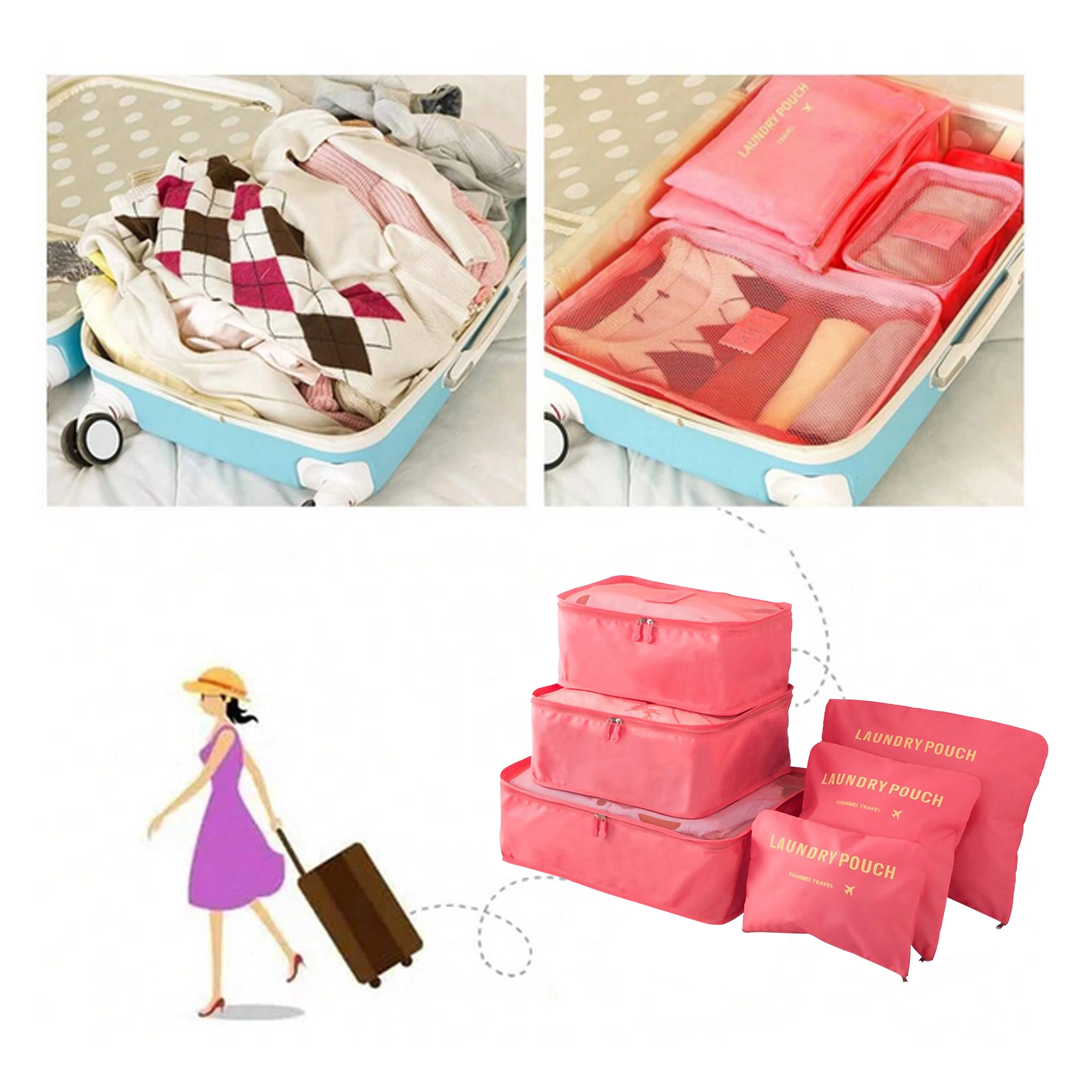 Pratique set de 6 organiseurs de voyage de tailles variées pour garder votre valise ordonnée et optimisée. Grâce aux fermetures éclair et à la construction légère, vous séparez facilement vêtements et accessoires, gagnez de la place et retrouvez tout rapidement. Idéal pour vacances et voyages d'affaires – séparation du linge propre et sale, meilleure visibilité dans les bagages et utilisation efficace de l’espace.