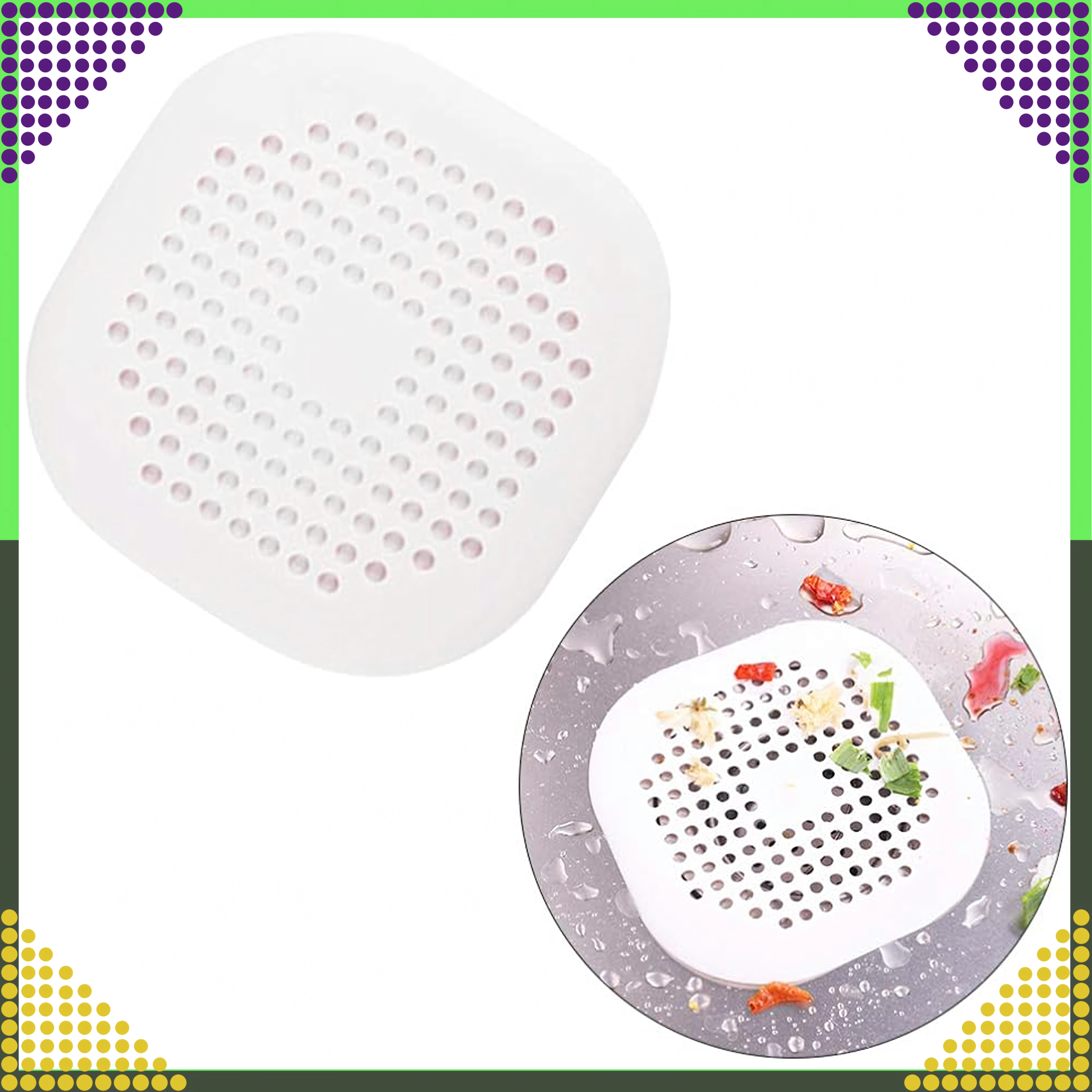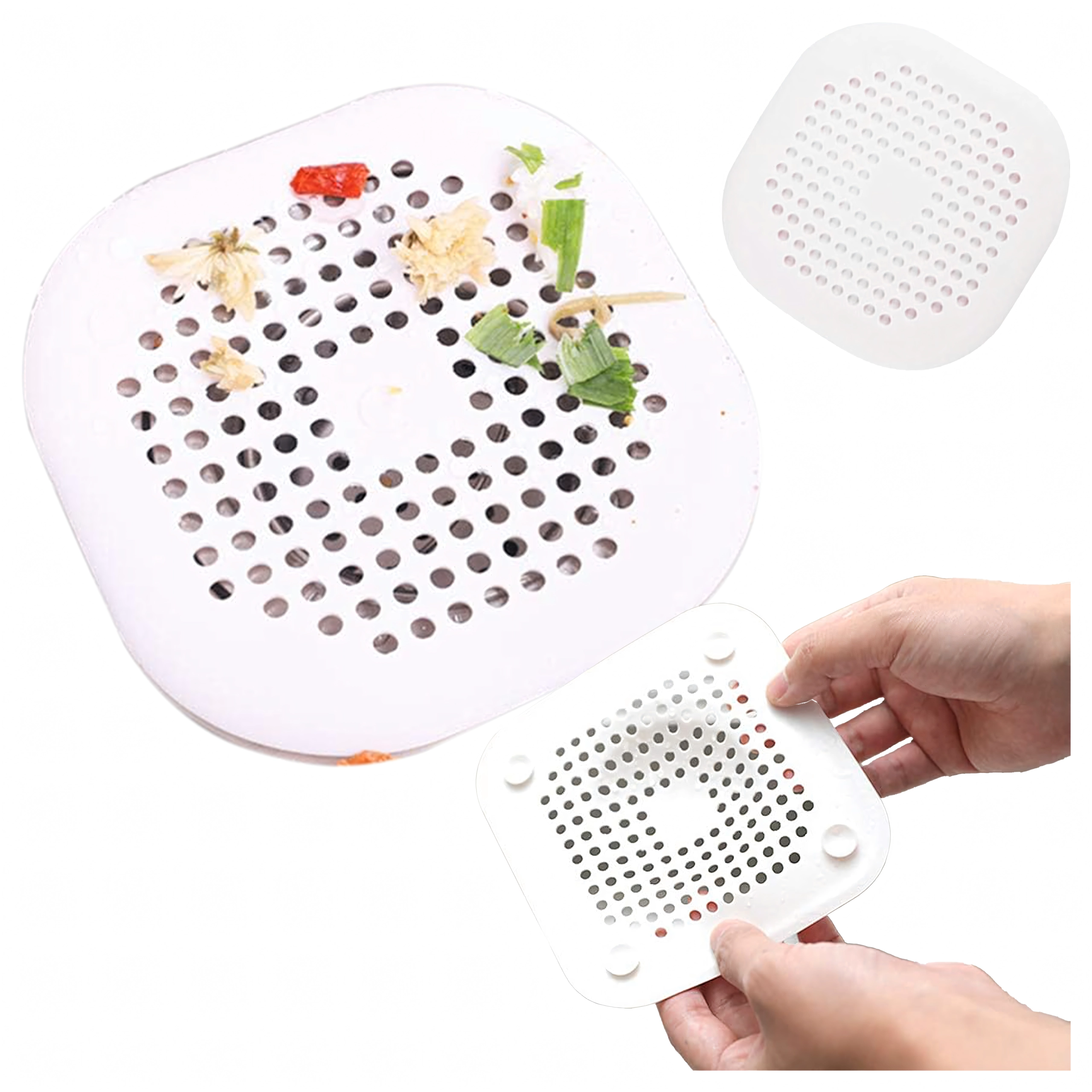 Cette passoire de bonde en silicone blanche allie une filtration efficace à un entretien facile. Les perforations denses assurent un écoulement rapide de l’eau tout en retenant les cheveux, les petites impuretés et les morceaux de nourriture plus gros. Grâce à son matériau souple, elle s’adapte aux surfaces planes comme légèrement courbées.